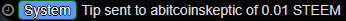 Tipping however should work and their is no fee on tipping from user to user making it perfect for off chain transfers of STEEM from user to user if that's a functionality one is looking to utilize. The only records of tips are kept in a server side database and under no circumstance would the site ever share this information.