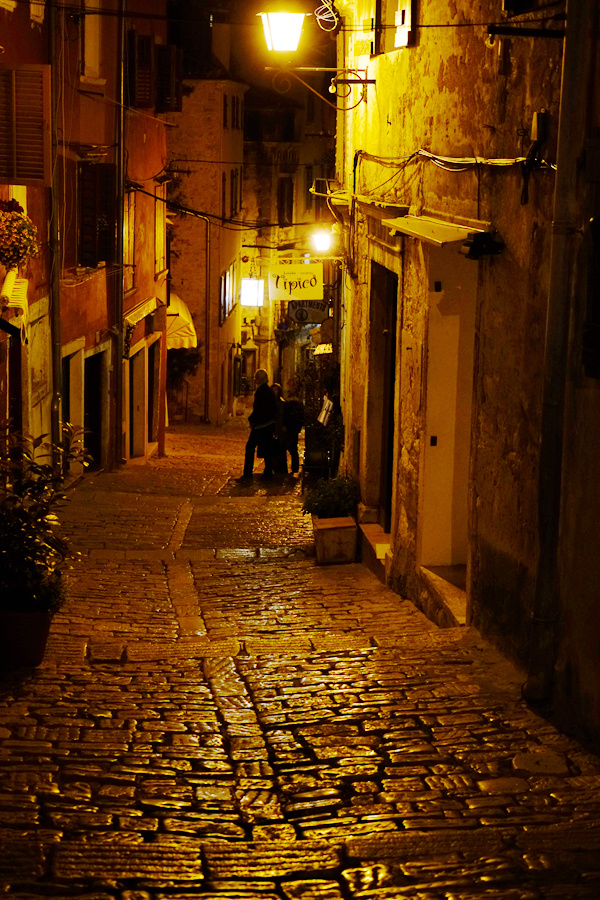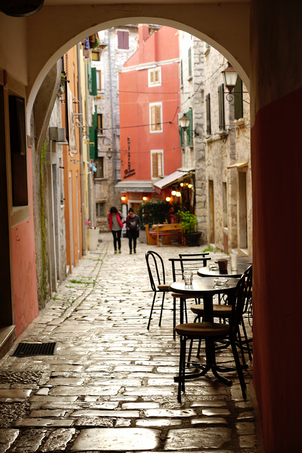 The city of Rovinj by many convenient alley, quaint, clean, everywhere can paint. The alleys are all slate paved. I have seen many flat stone road, it is mostly relatively short history; I have seen a lot of old worn surface light stone road, the road mostly concave pit. Rovinj stone road out of the ordinary, the stone looks very old, in the years of her seems to be a layer of patina, but very smooth solid. The stone, which is used to be beige, is particularly glossy and smooth, with charming light in the daytime and night. This is just the end of the Italian style of aesthetic and German style construction.