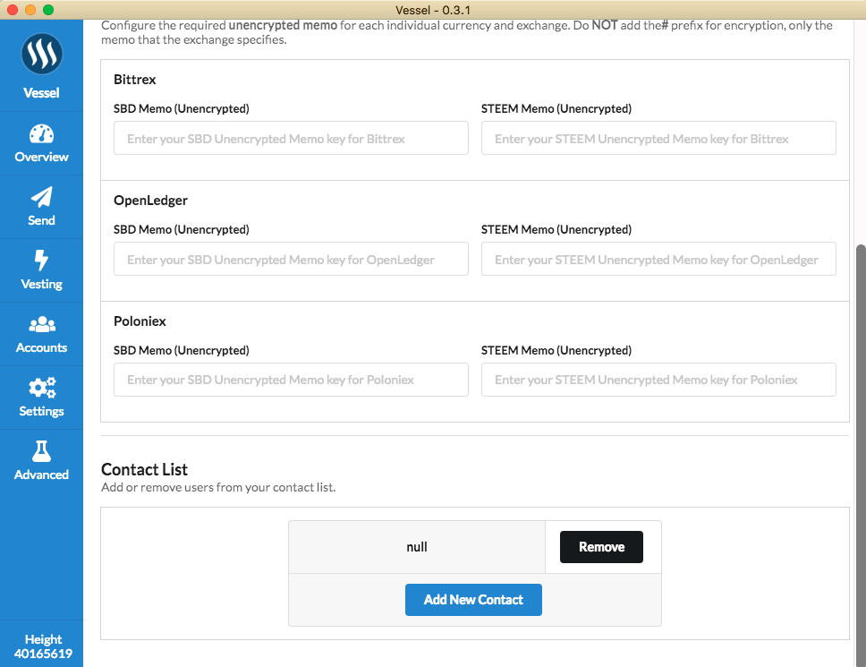 Vessel Release v0.3.1 comes with the ability for users to add/remove contacts to the wallet. This is the base of the coming advancements and features related to a Steem address book.
