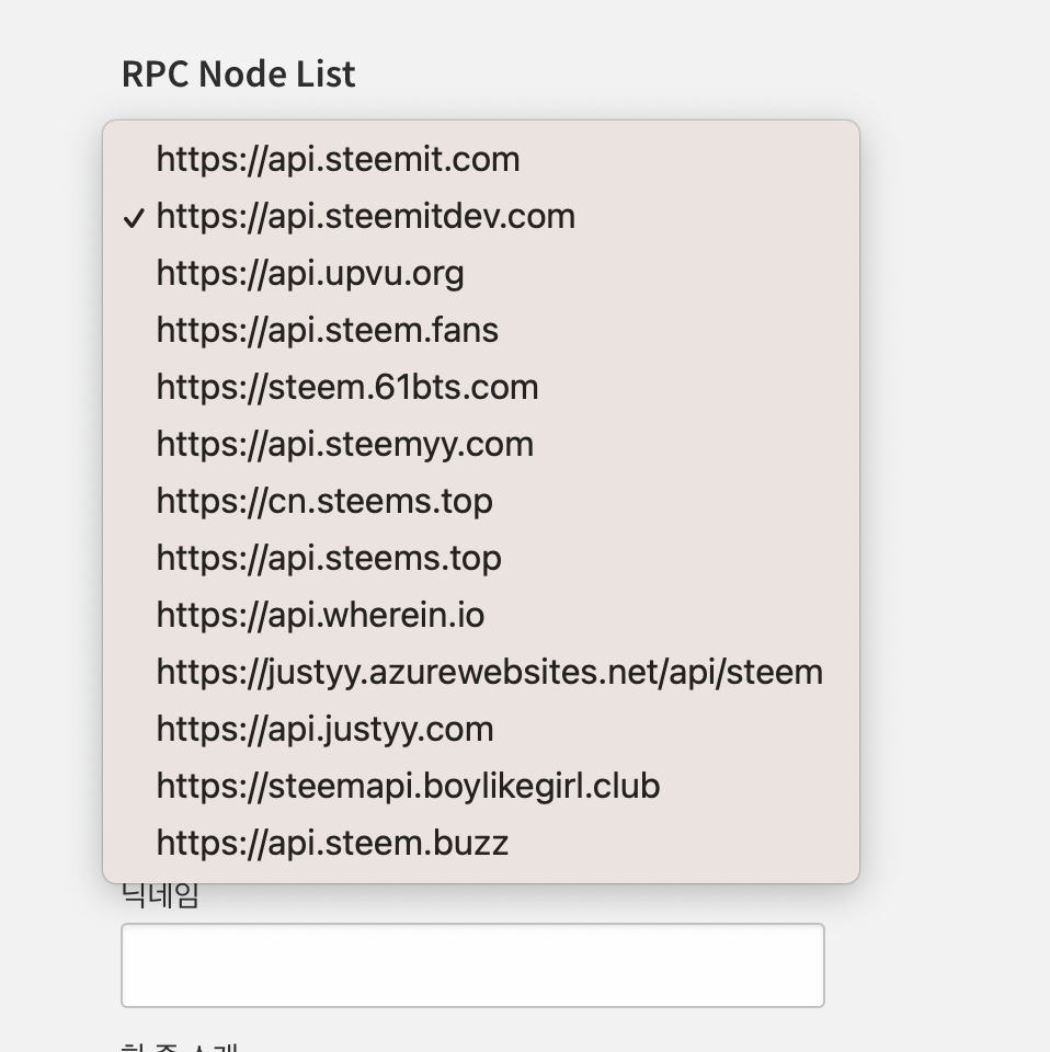 As mentioned above, you can select the RPC Node list that is currently added by default, and the screen is implemented as follows.
