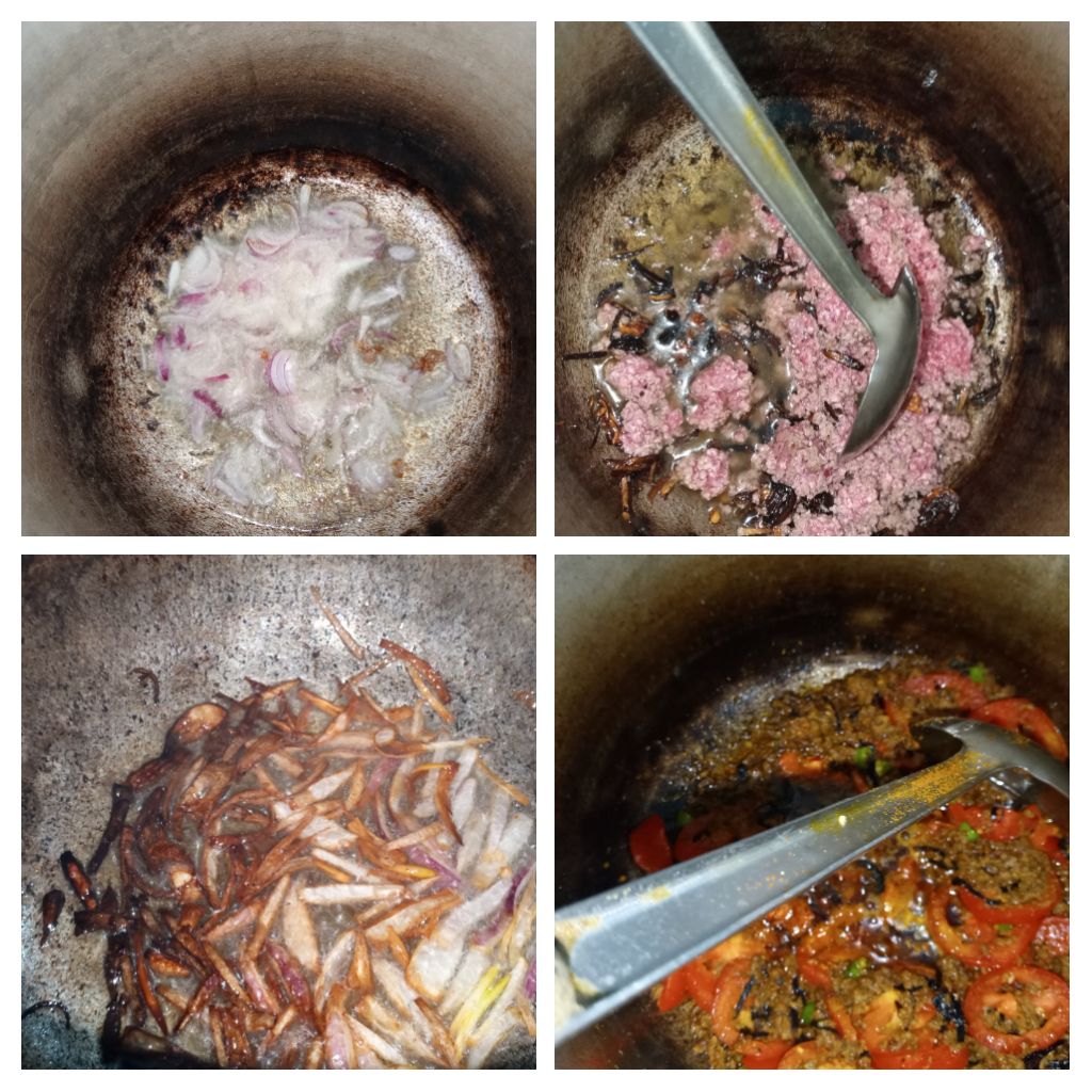 I put it in minced meat the cut tomatoes and chille mirches .