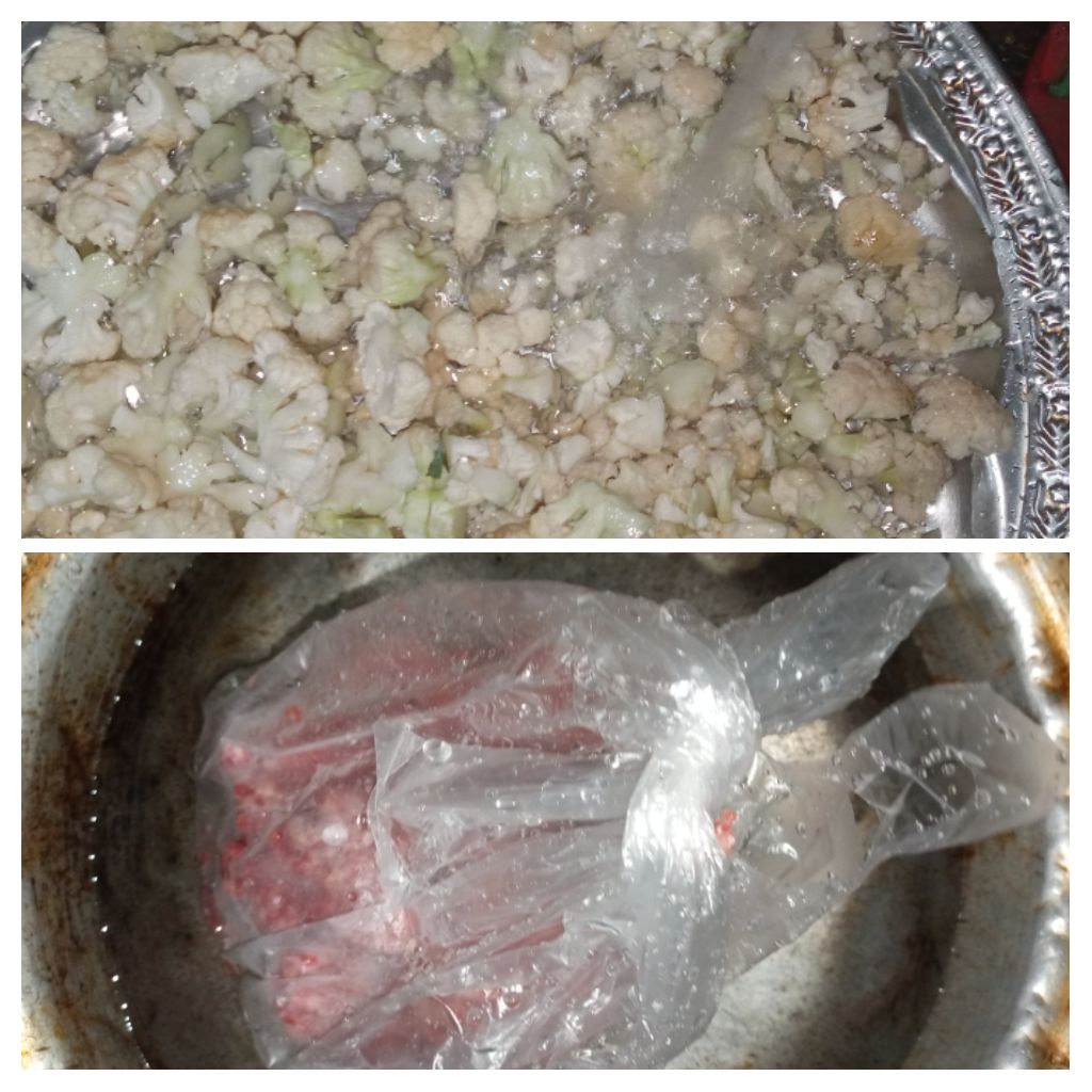 First I take the chaowhardess and cut it.then I take minced meat from friged.the I wash the chaowhardess and minced meat.