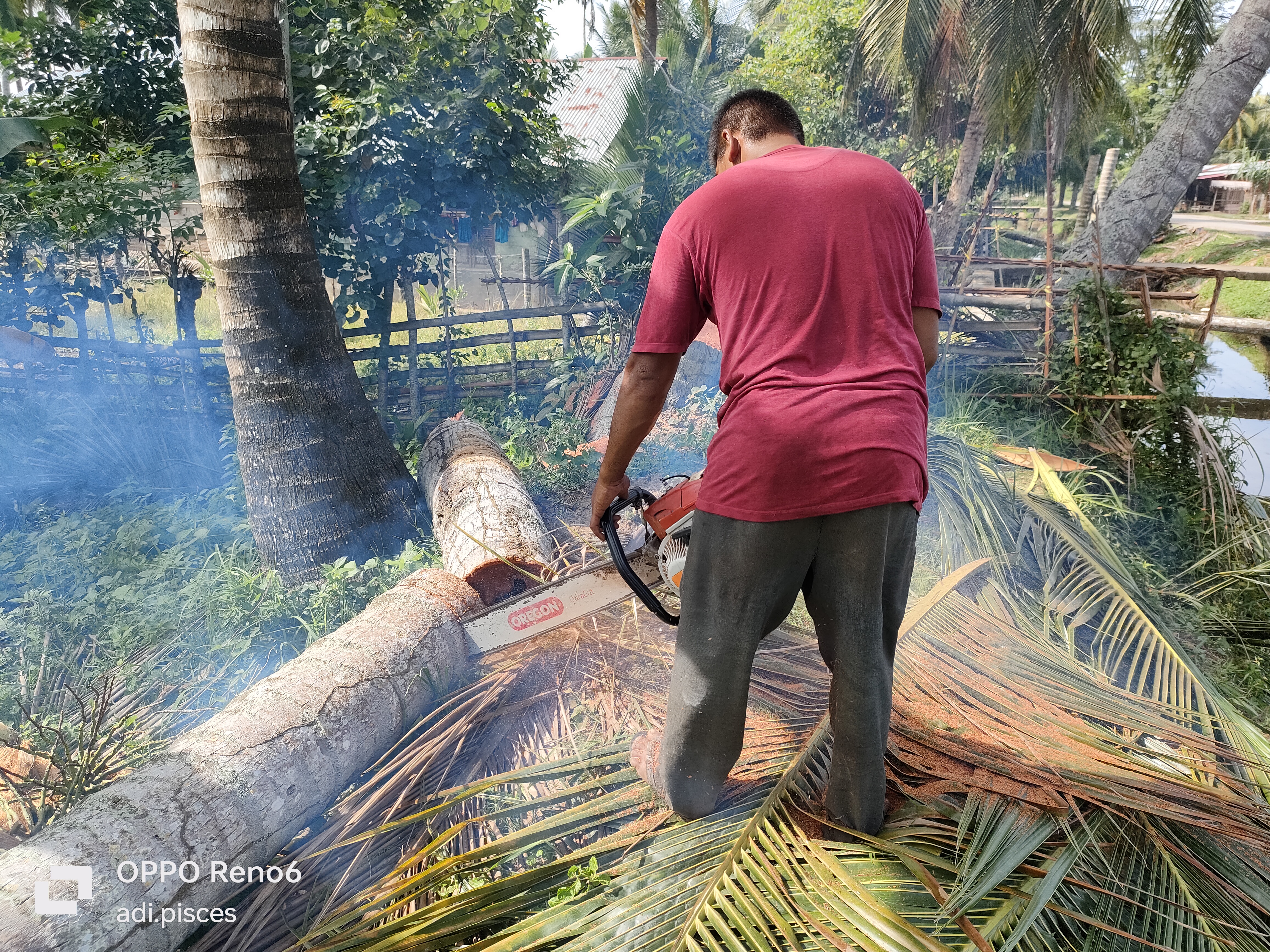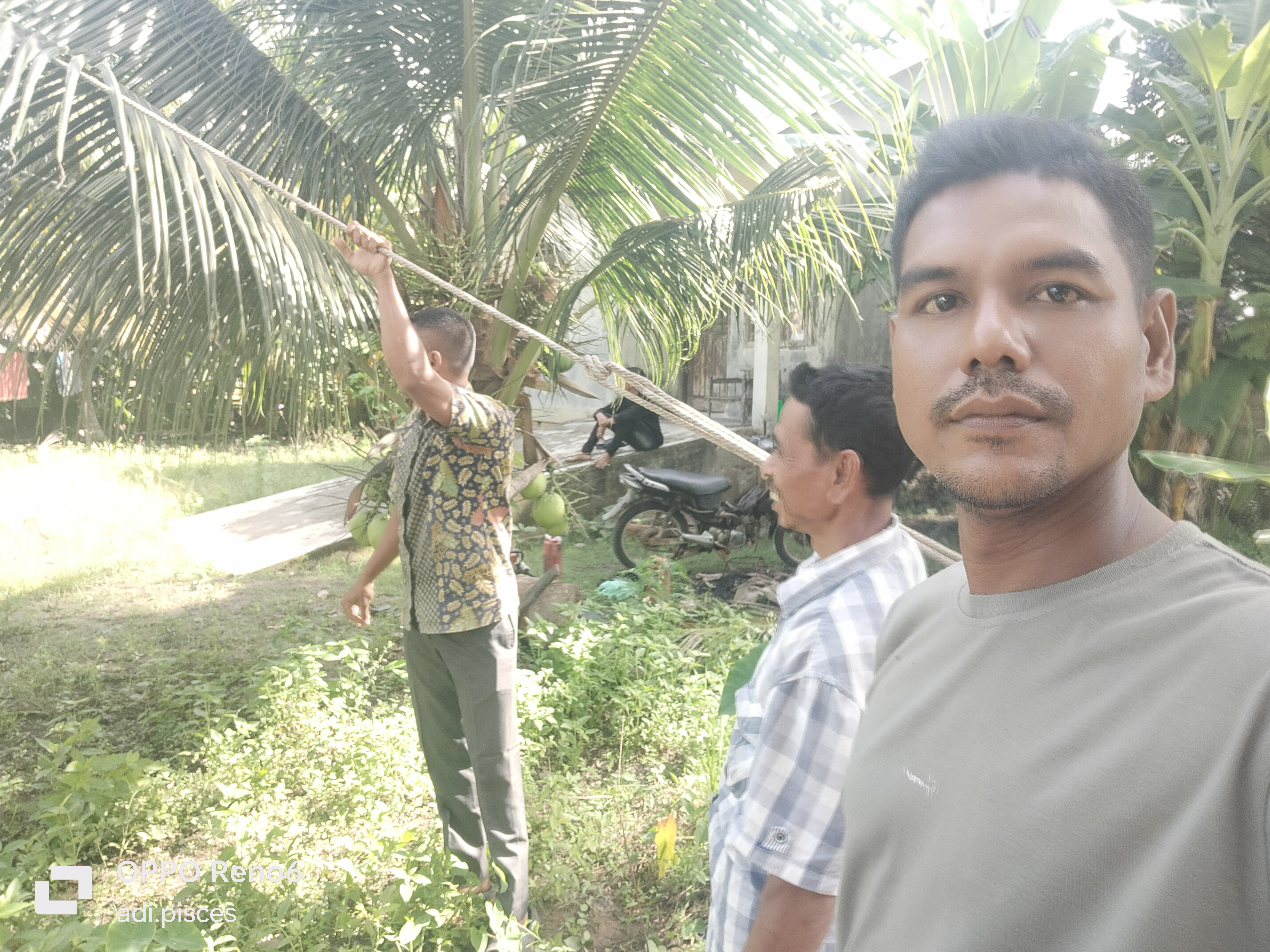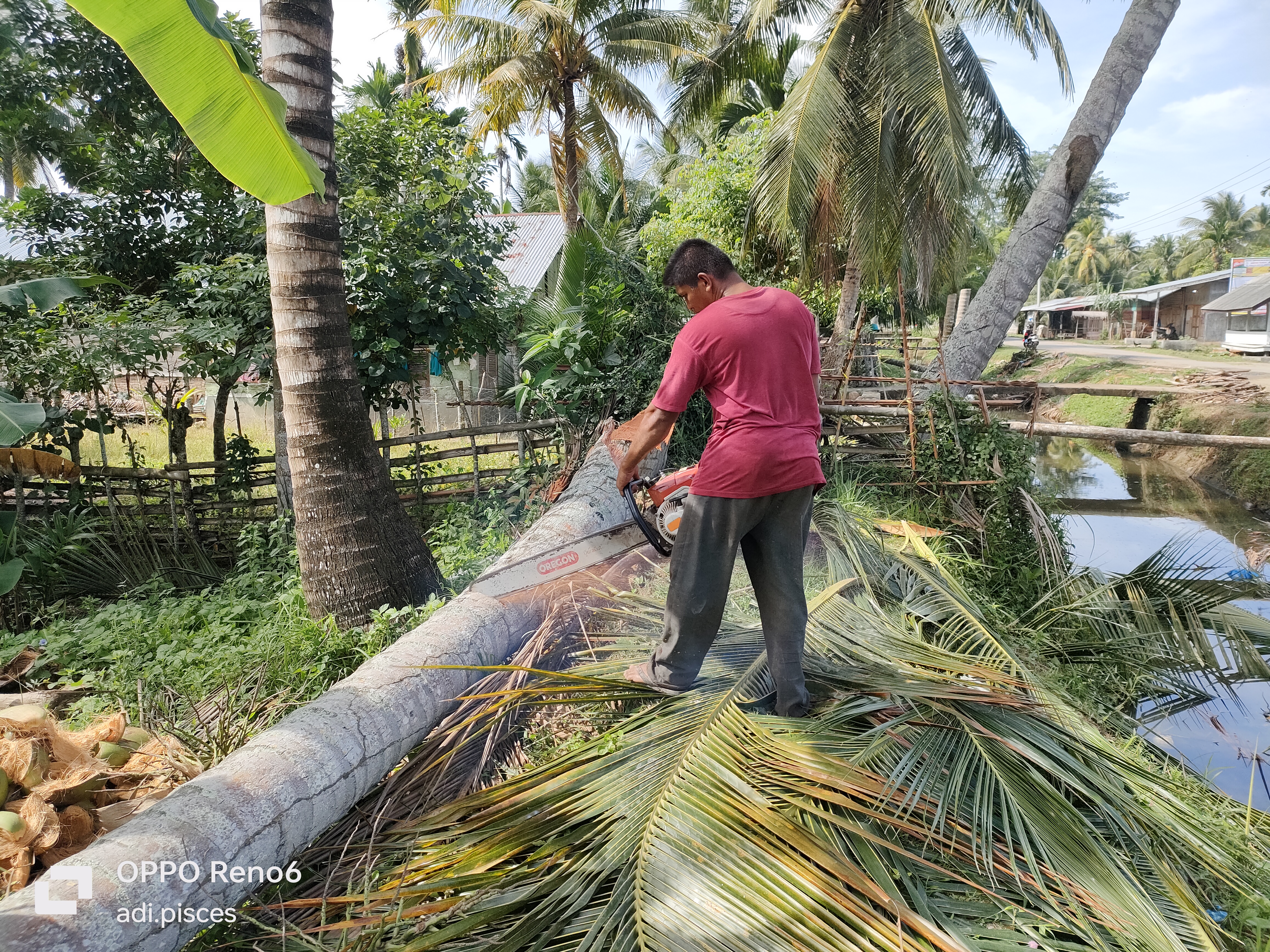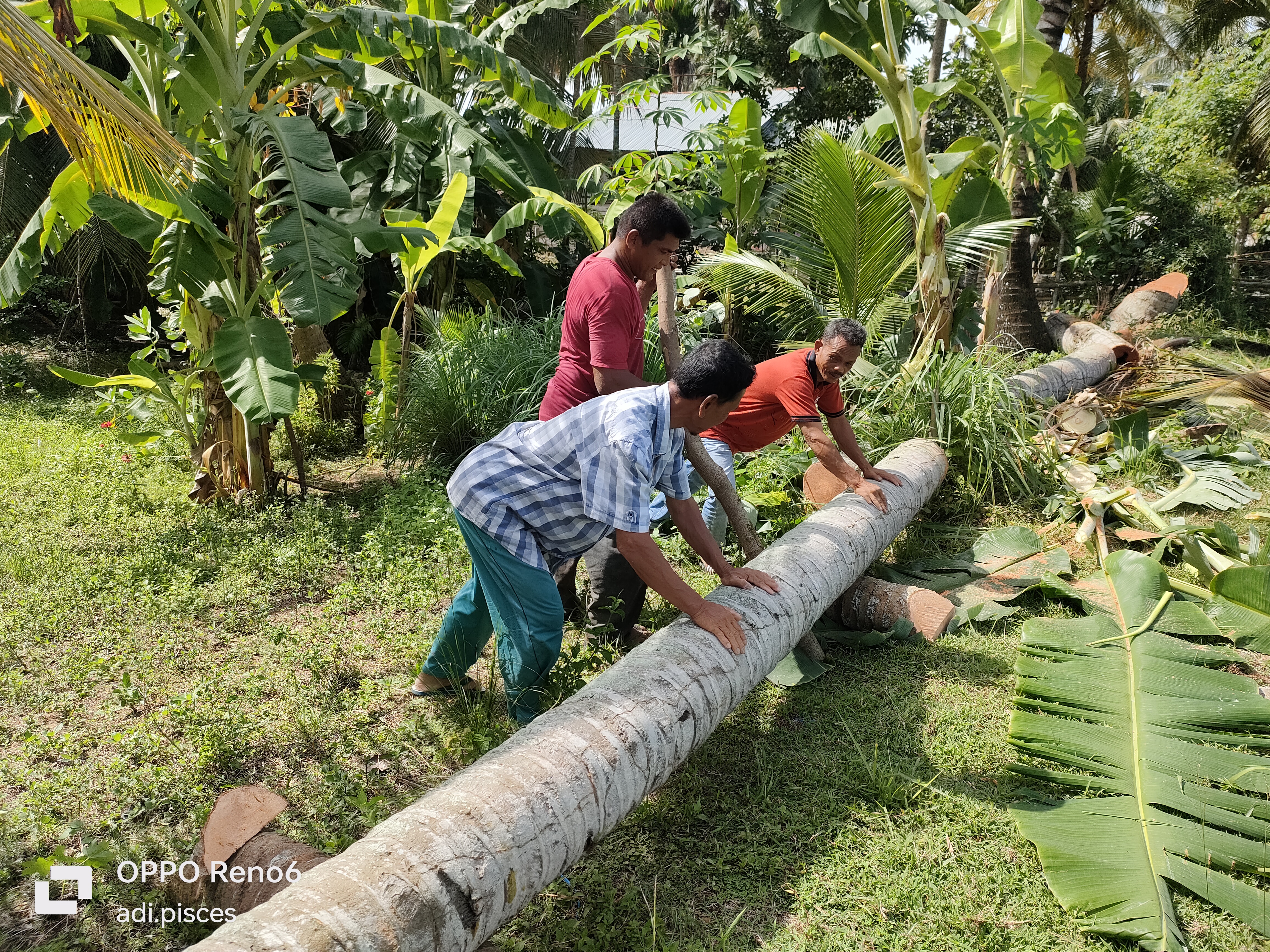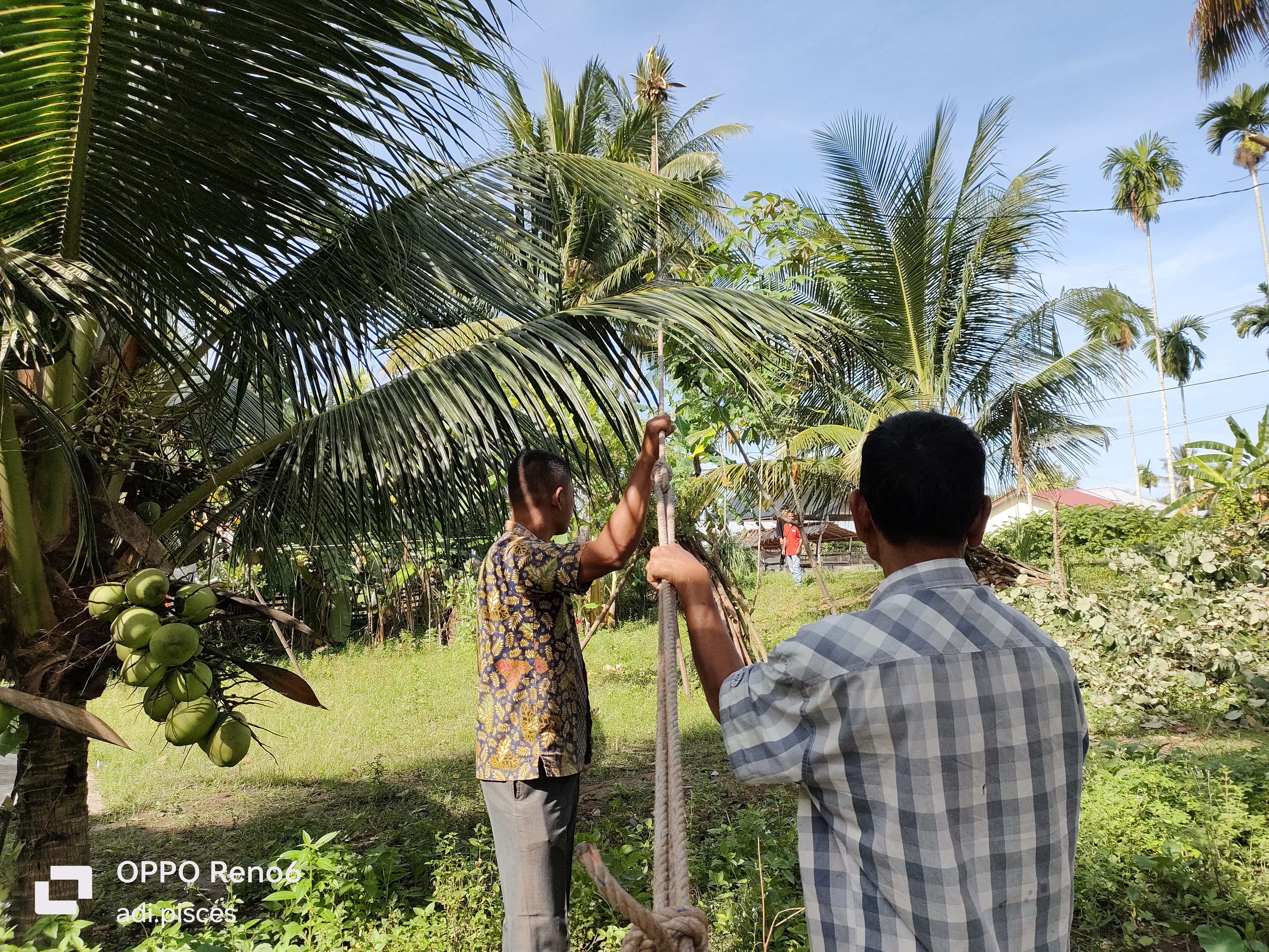 Saling membantu masih sangat kental dapat kita jumpai di dalam kehidupan sehari-hari di perdesaan dan hari ini kami ingin membantu salah satu warga yang ingin memotong pohon kelapa, kami di minta untuk menarik pohon kelapa saat dipotong pada pangkalnya agar nantinya tumbang kearah yang inginkan