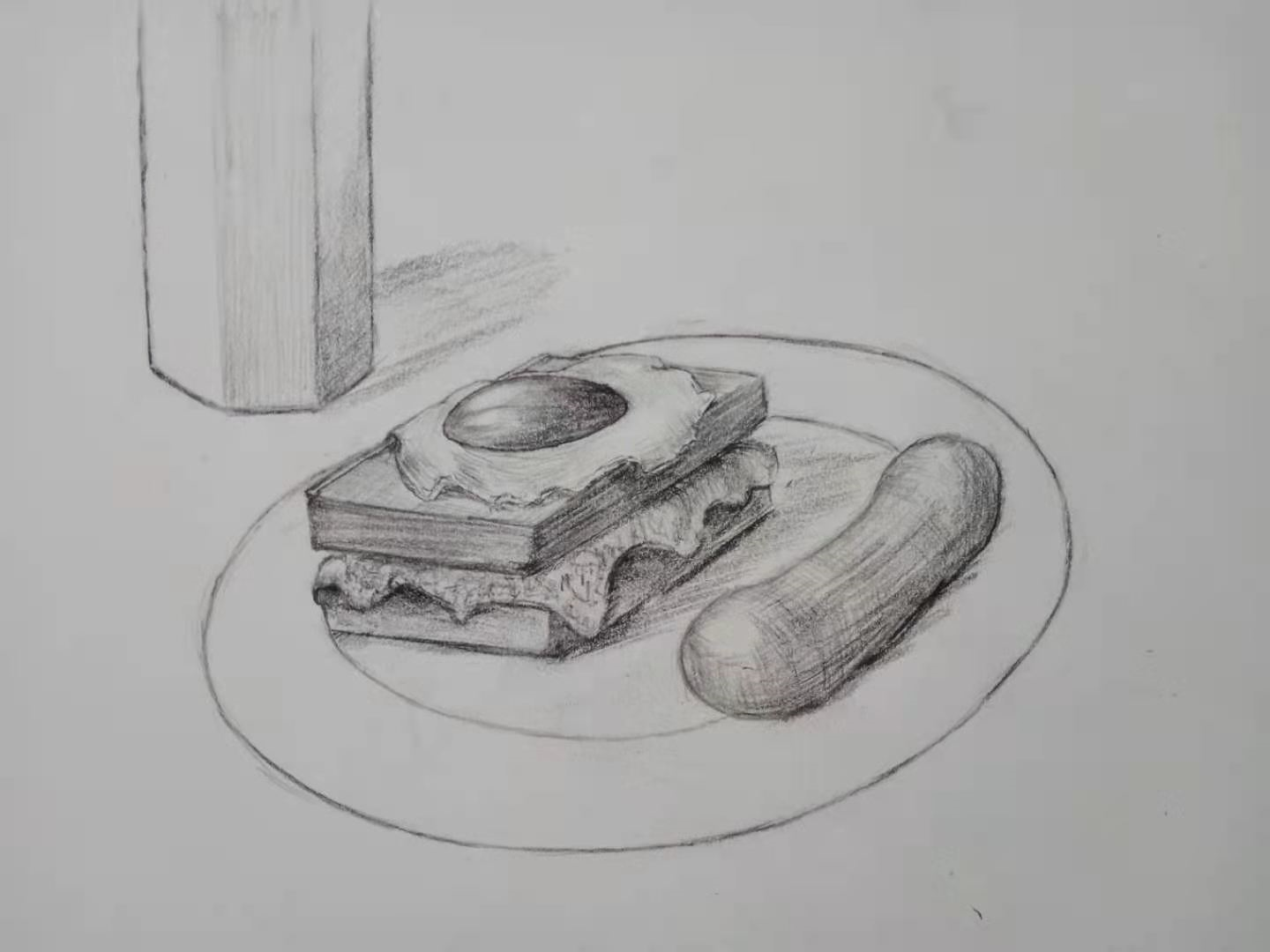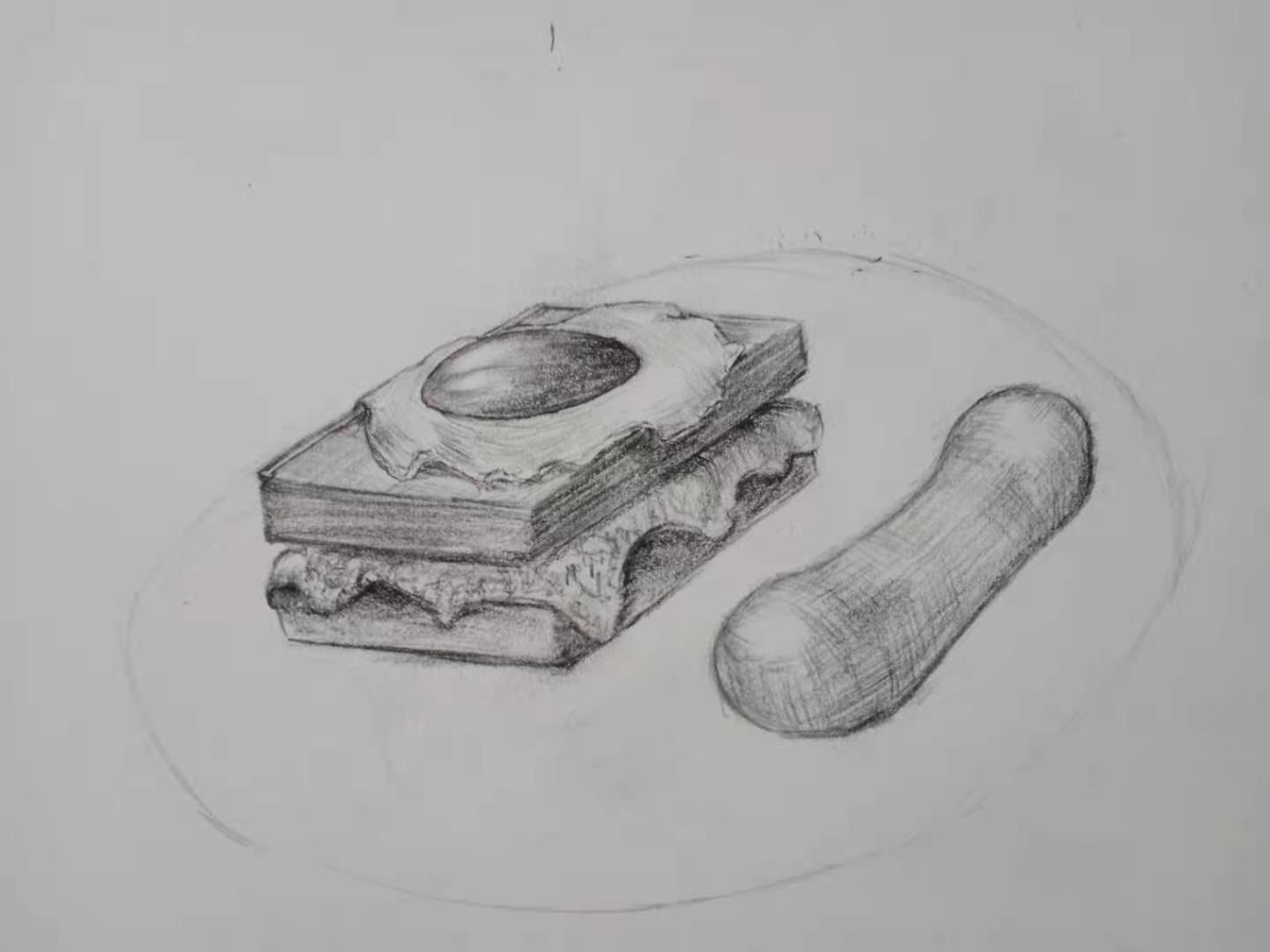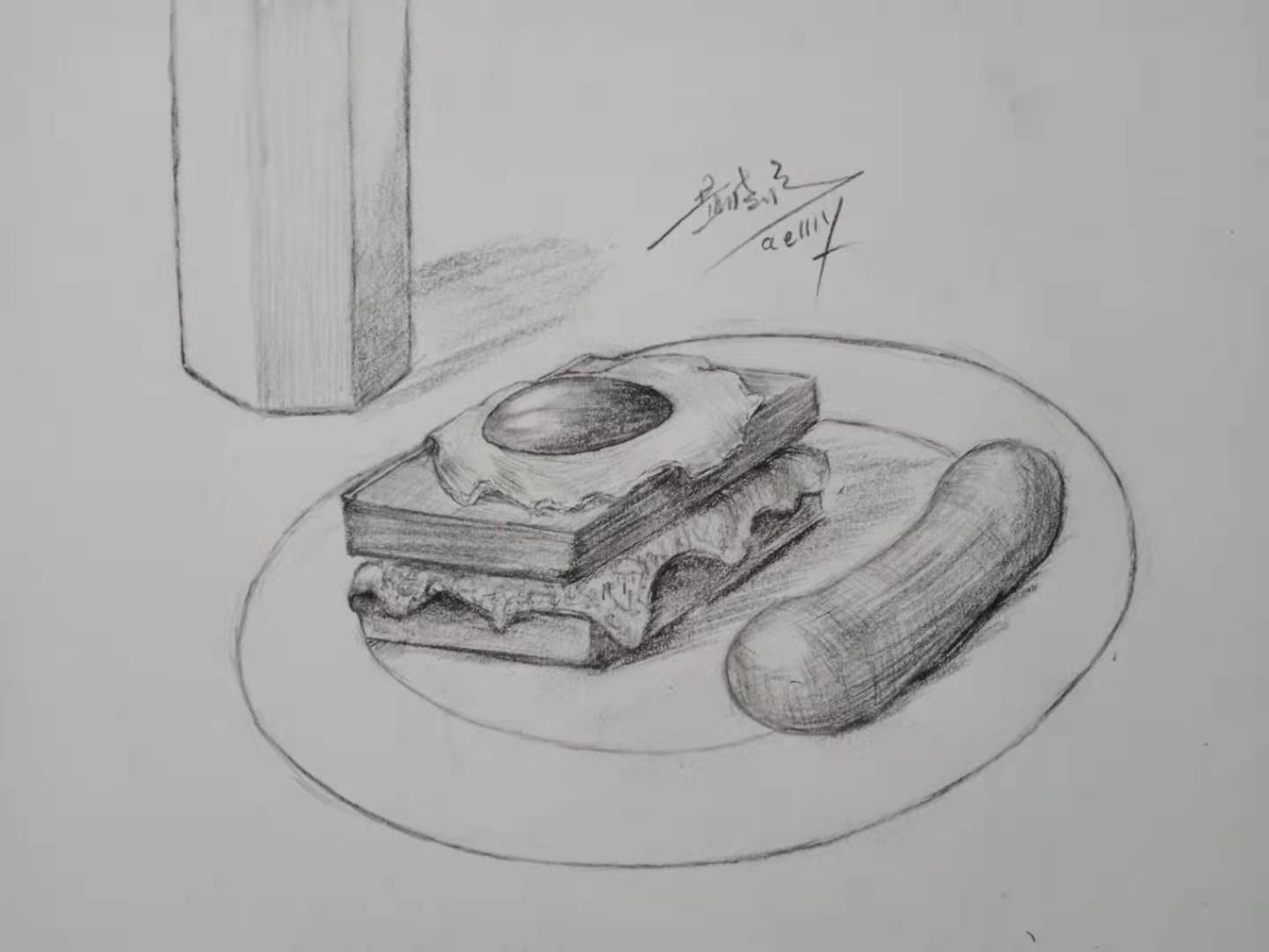 原本我只是想画一本书的,后来肚子饿了。竟然改成画一份早餐。