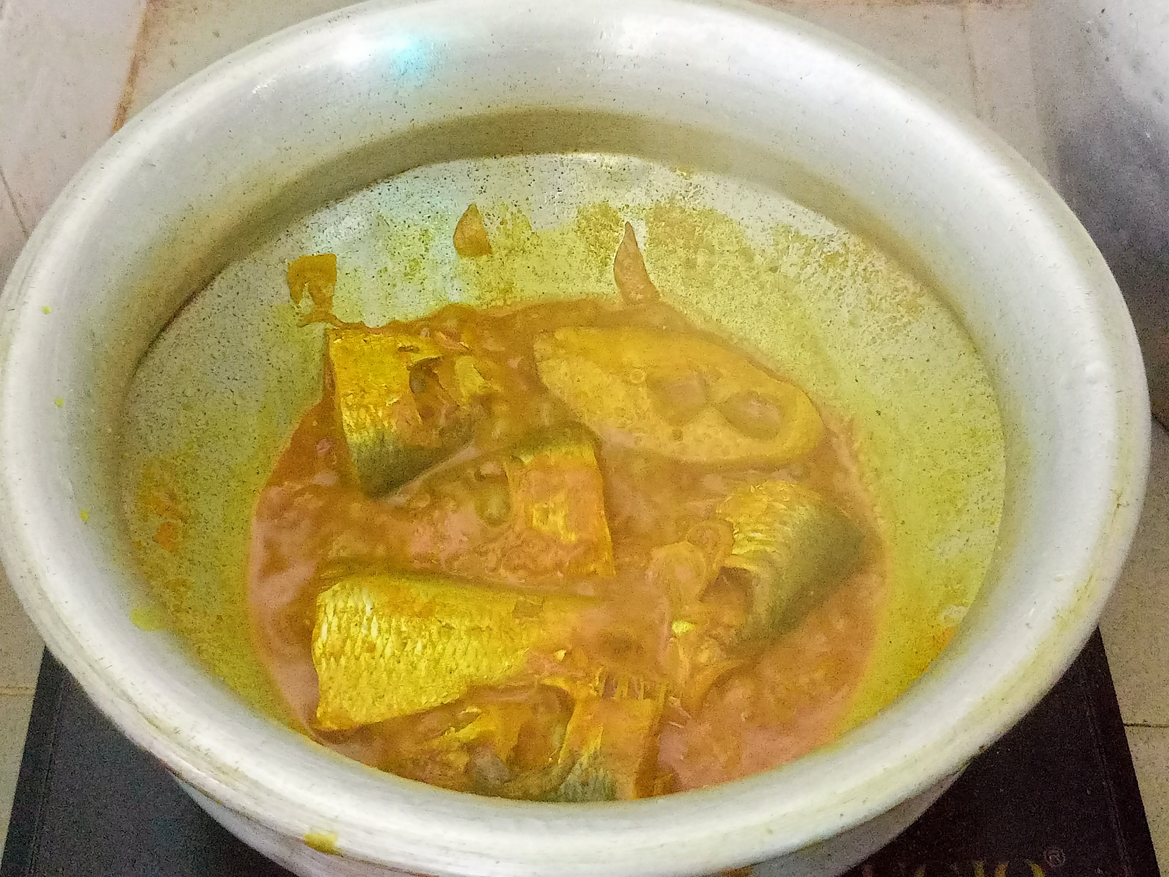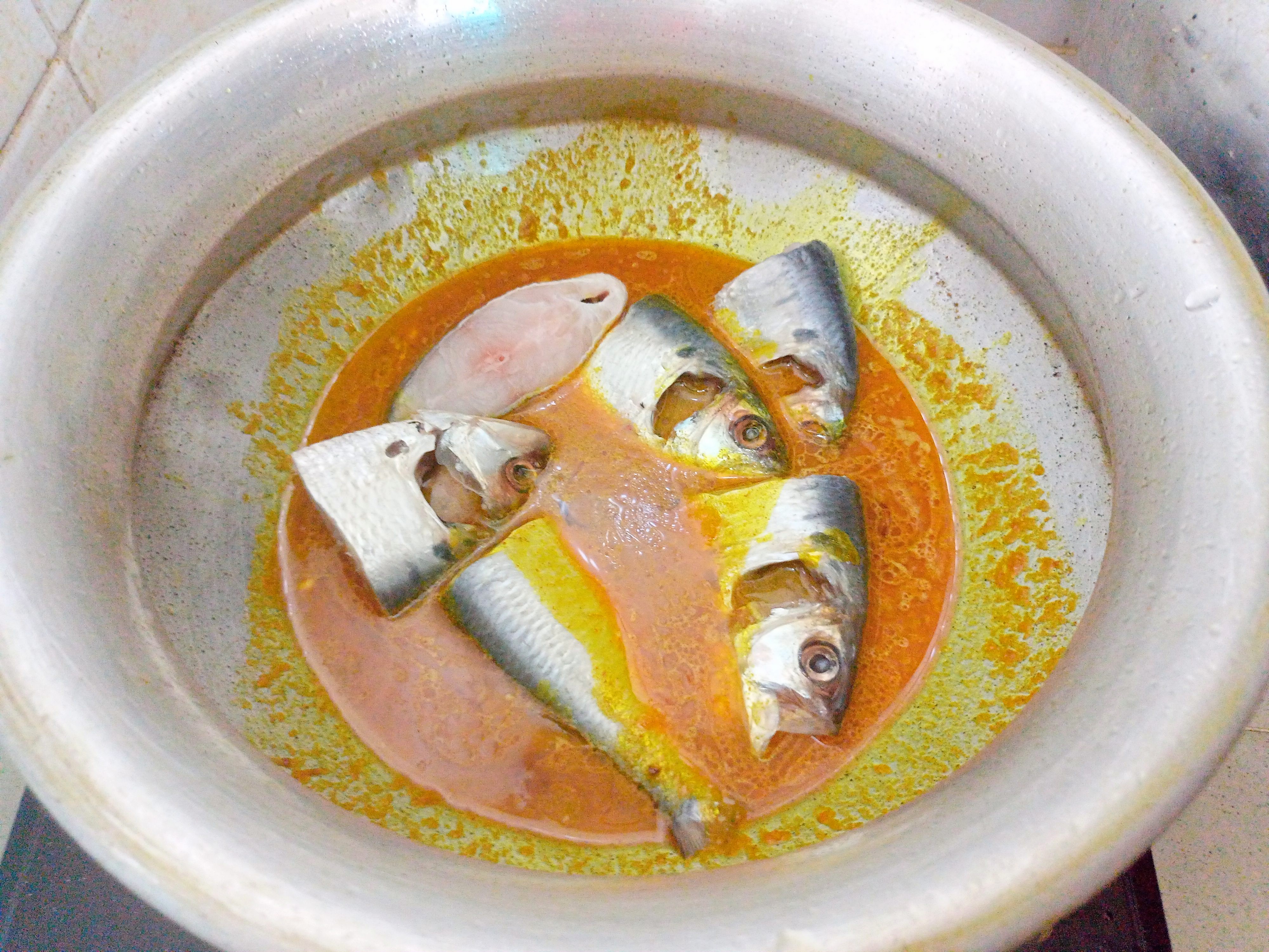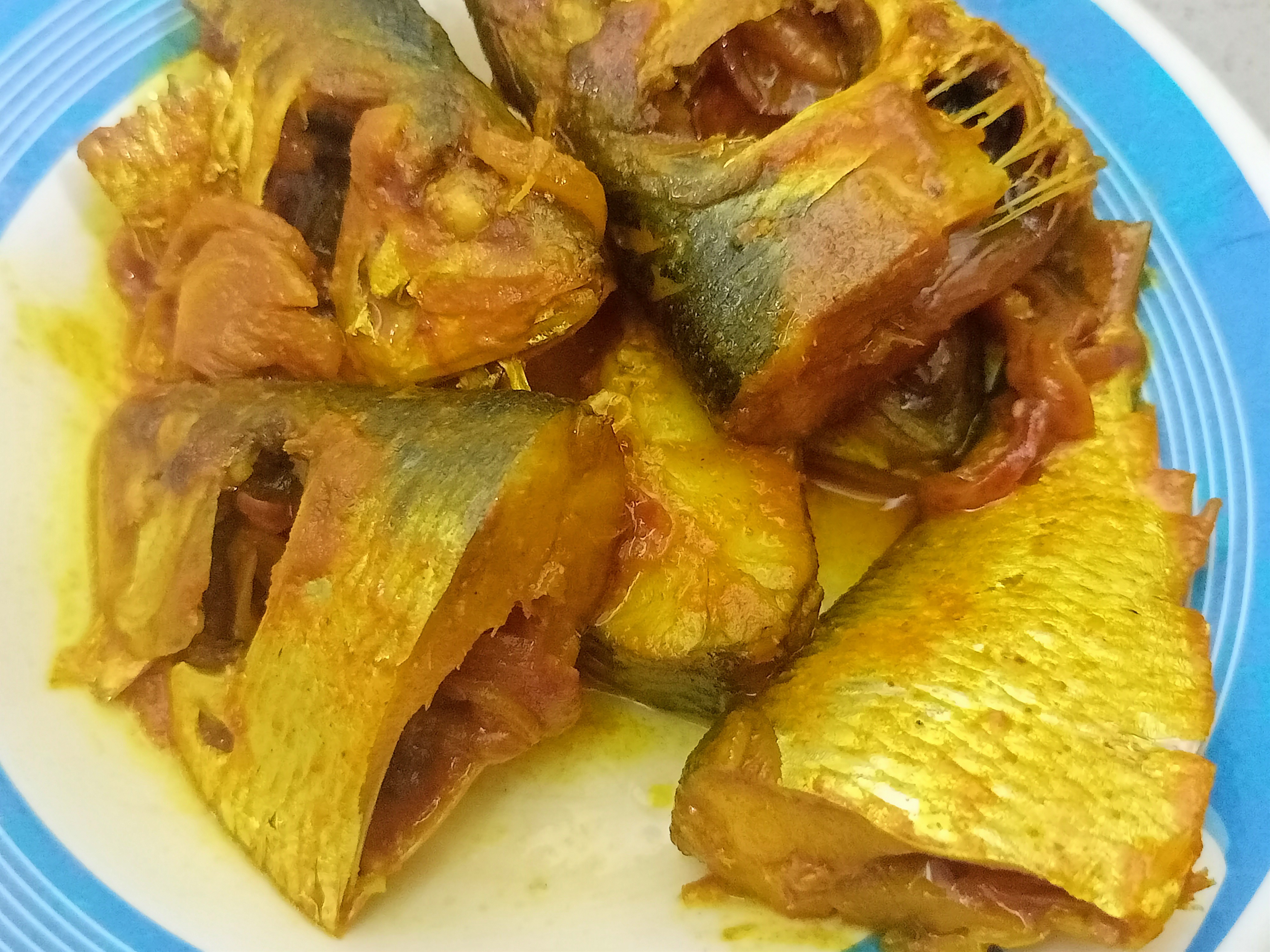 | এবার মাছগুলো দিয়ে দিলাম। এরপর ঢাকনা দিয়ে বিশ মিনিট রান্না করলাম। ঝোল কিছুটা শুকিয়ে এলে আমাদের রান্না শেষ। এবার পরিবেশনের পালা। |