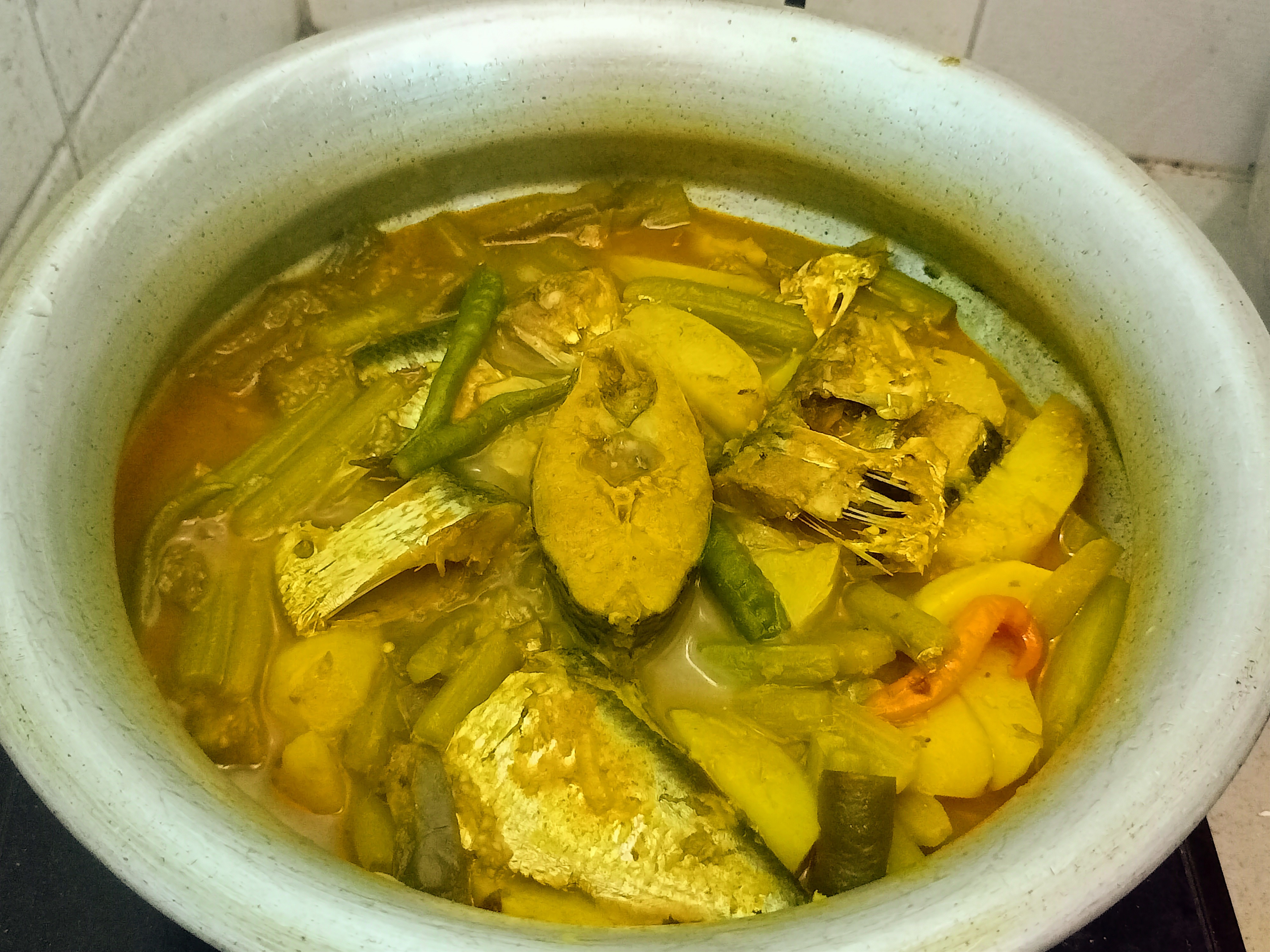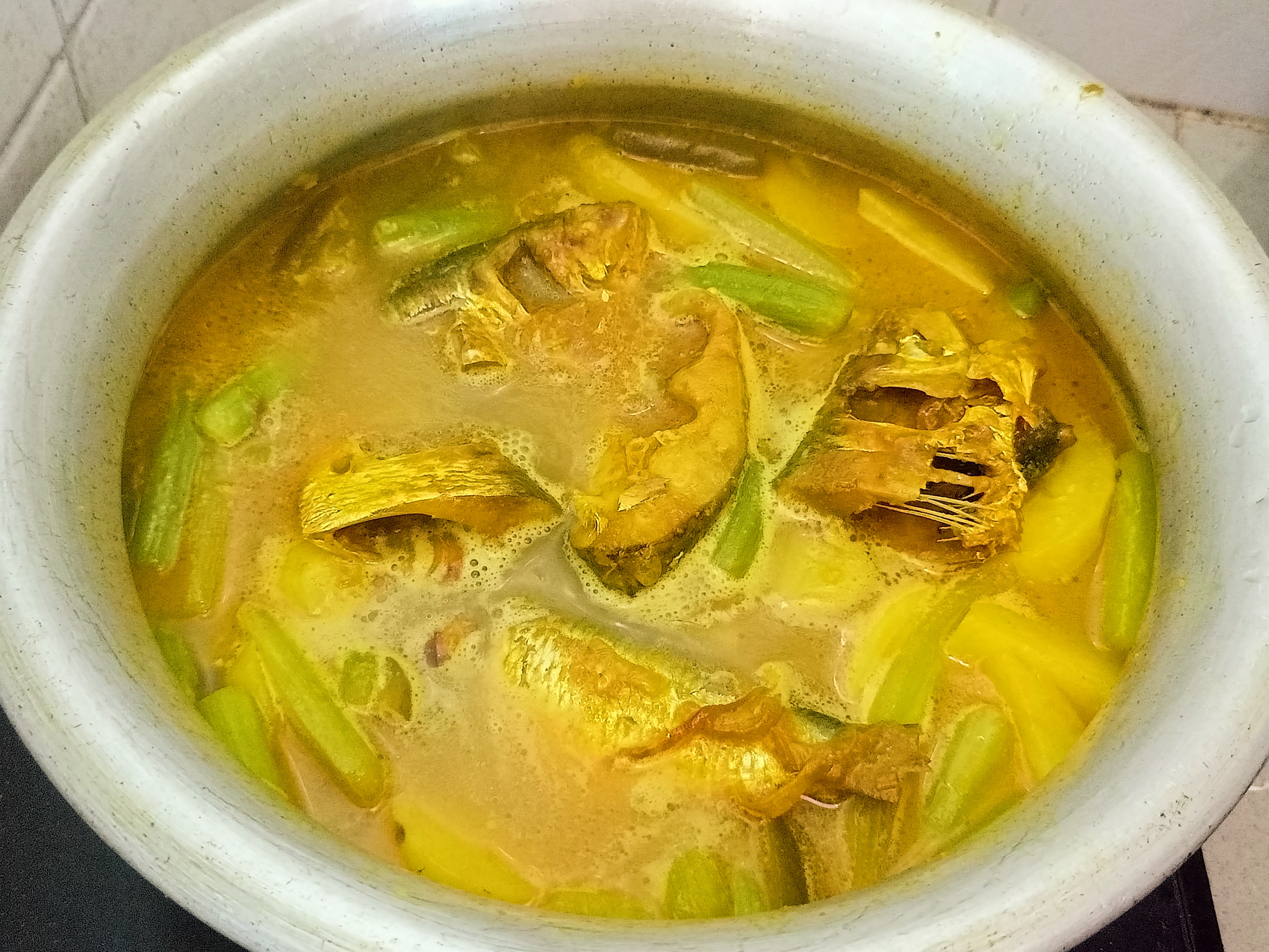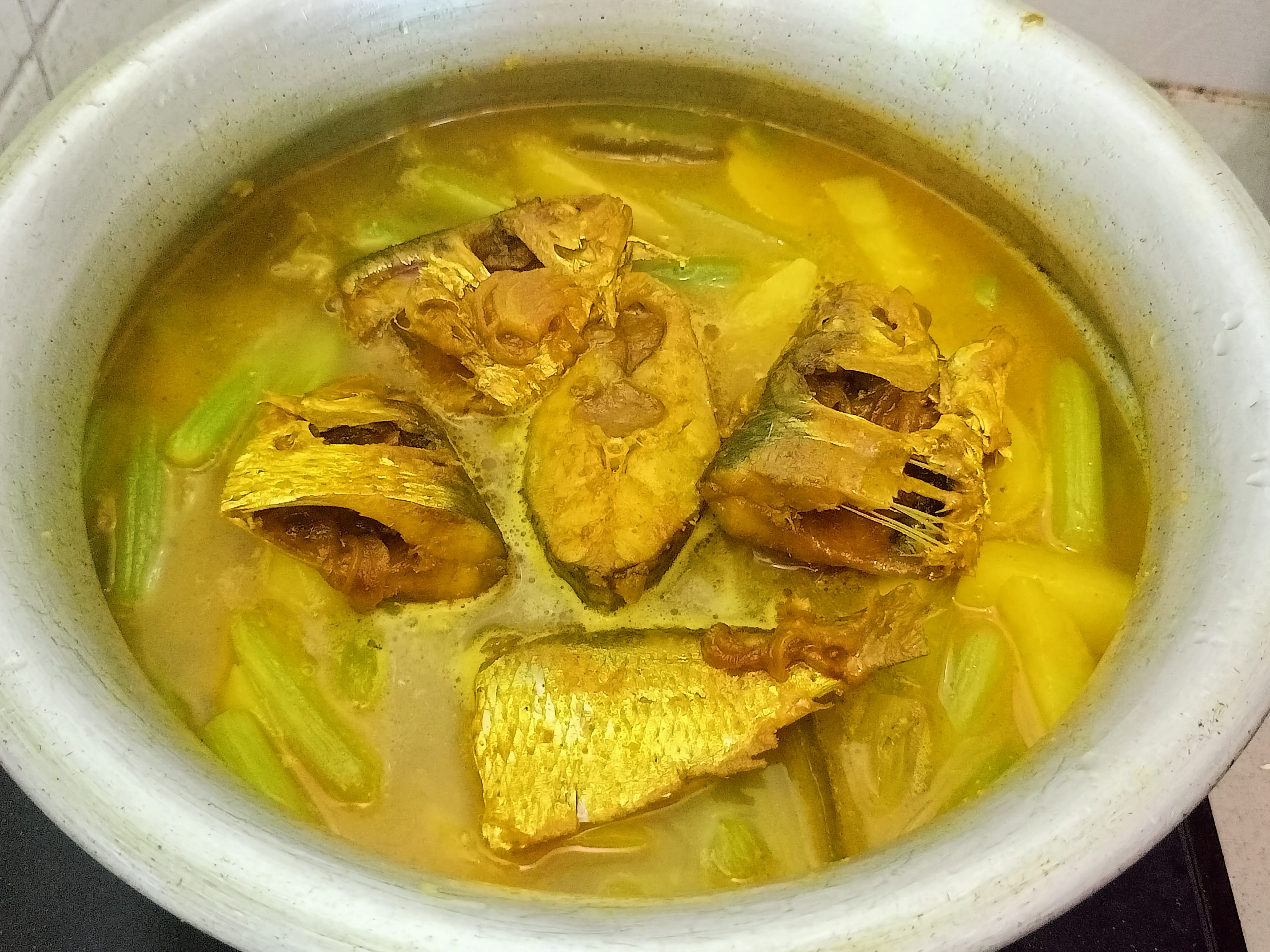 | এবার মাছগুলো দিয়ে দিলাম। এরপর ঢাকনা দিয়ে বিশ মিনিট রান্না করলাম। ঝোল কিছুটা শুকিয়ে এলে আমাদের রান্না শেষ। এবার পরিবেশনের পালা। |