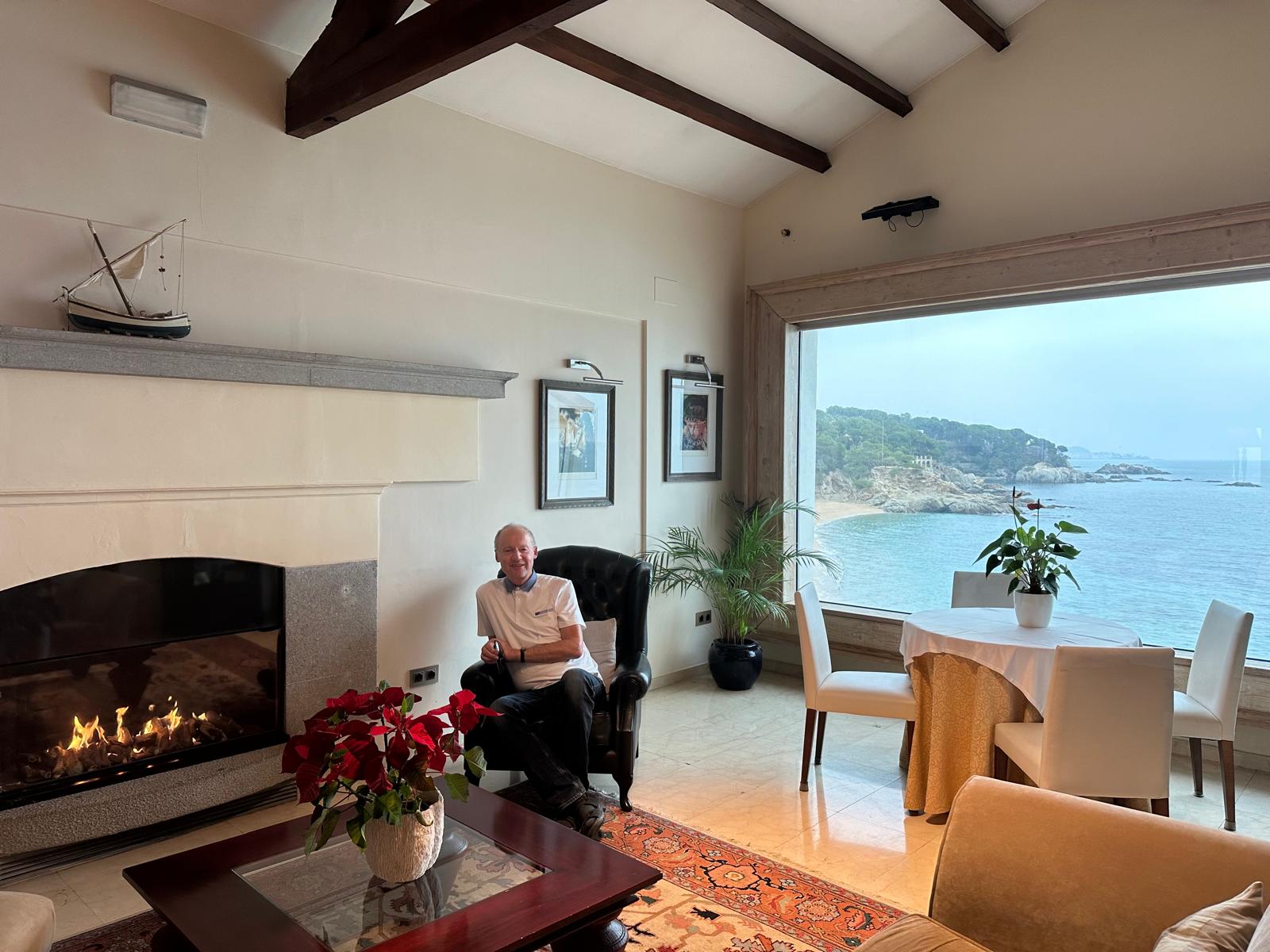 Kaminfeuer und Meerblick an der Costa Brava in Platja d'Aro, Spanien. 23. Februar 2026.