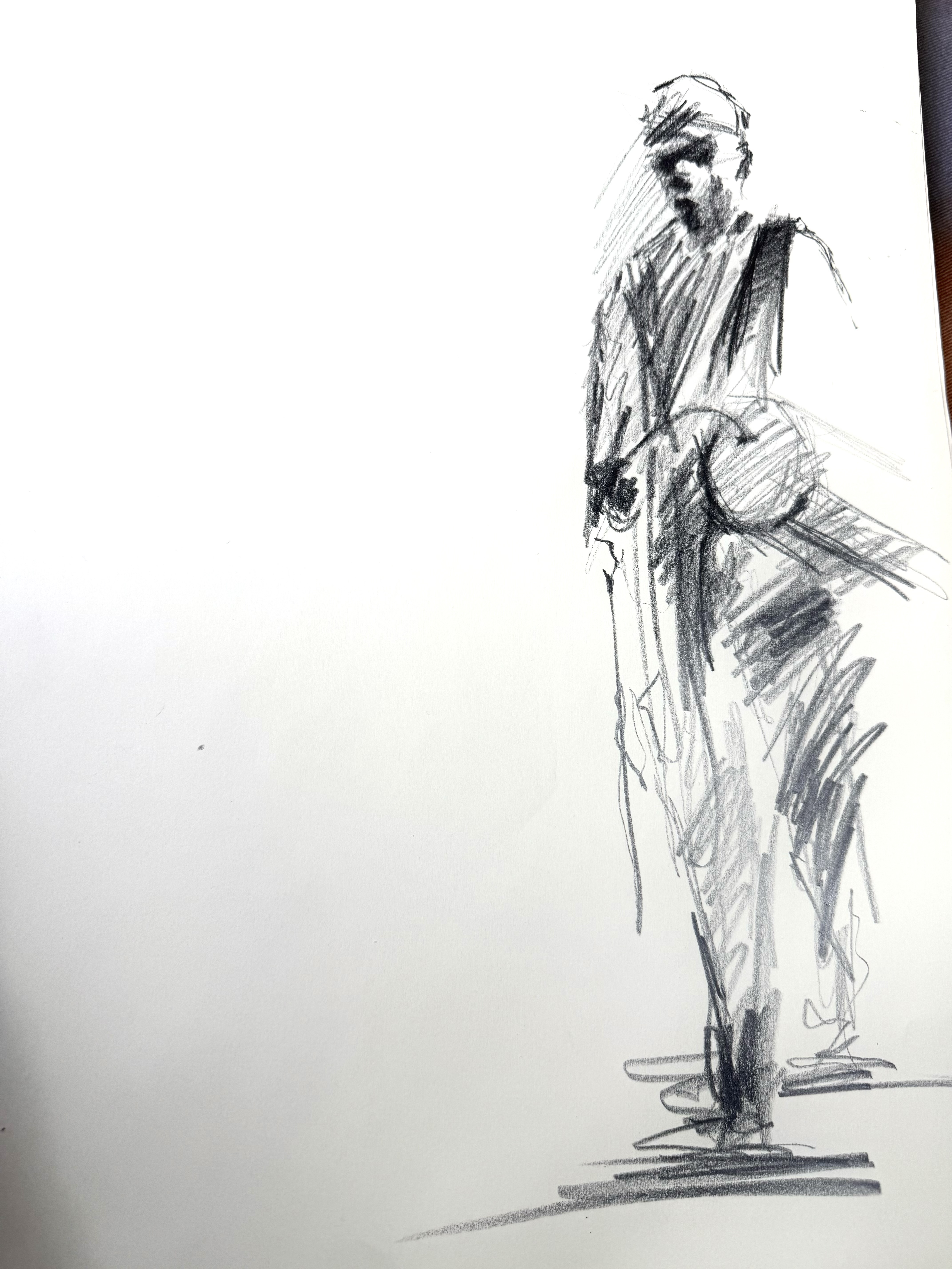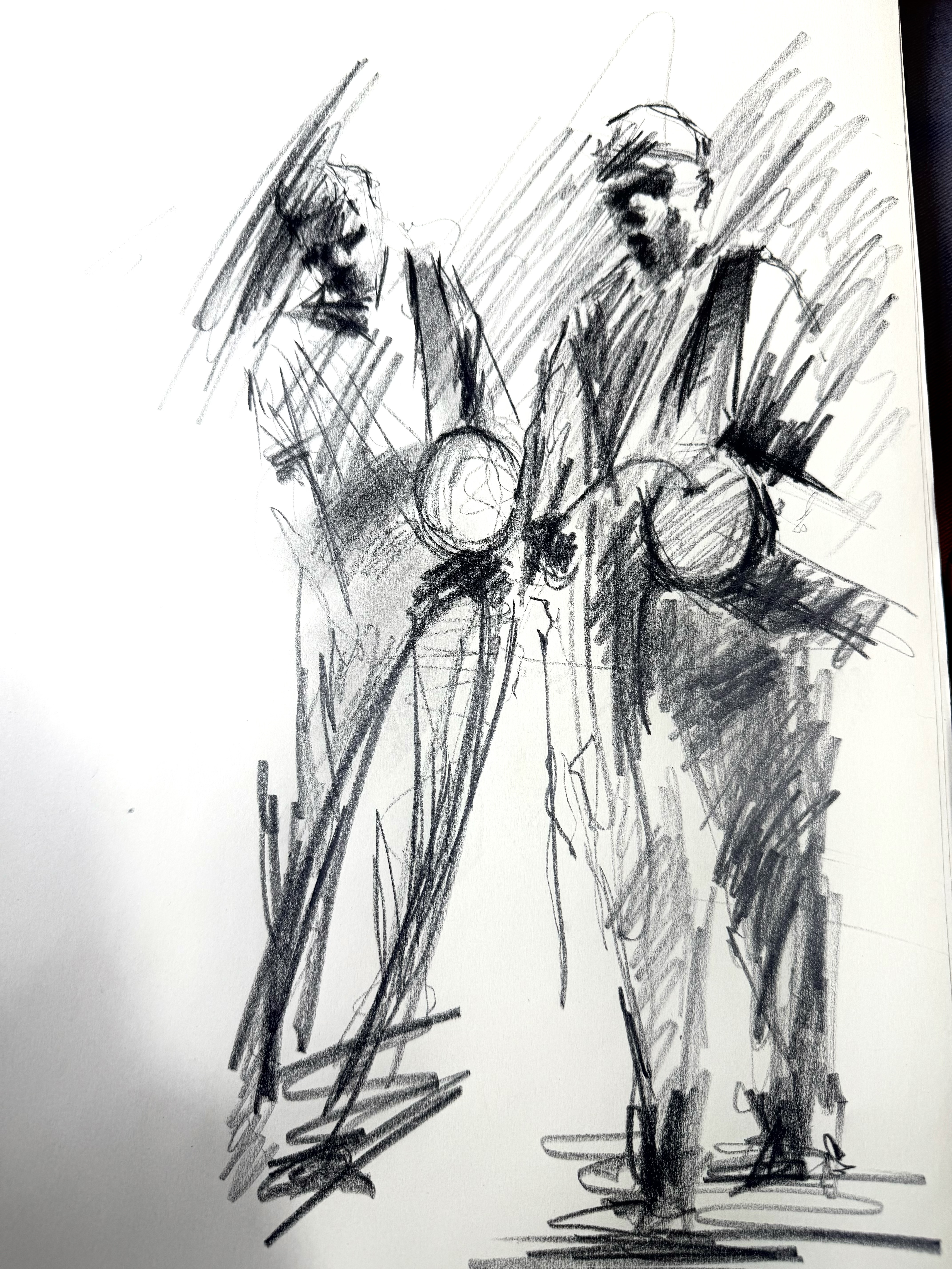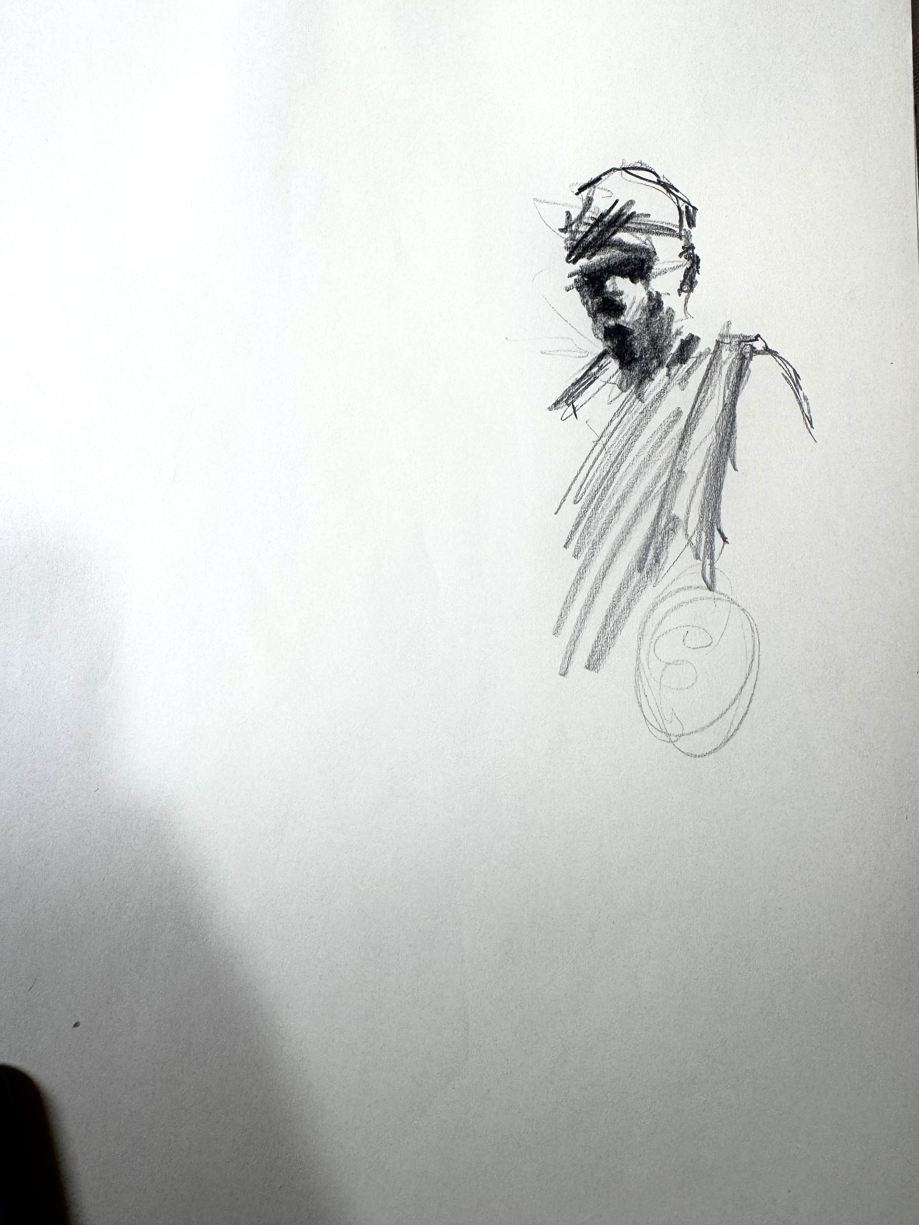 Moved by their presence, I couldn’t resist taking a picture to capture the essence of the moment. As soon as I got home, I translated that inspiration into this drawing, allowing my strokes to flow intentionally, mirroring the rhythm and movement I witnessed. Each line carries the spontaneity and vibrancy of their music, a visual ode to the spirit of the drummers who brightened my day. This artwork is not just a sketch but a celebration of the beautiful and unifying power of music.