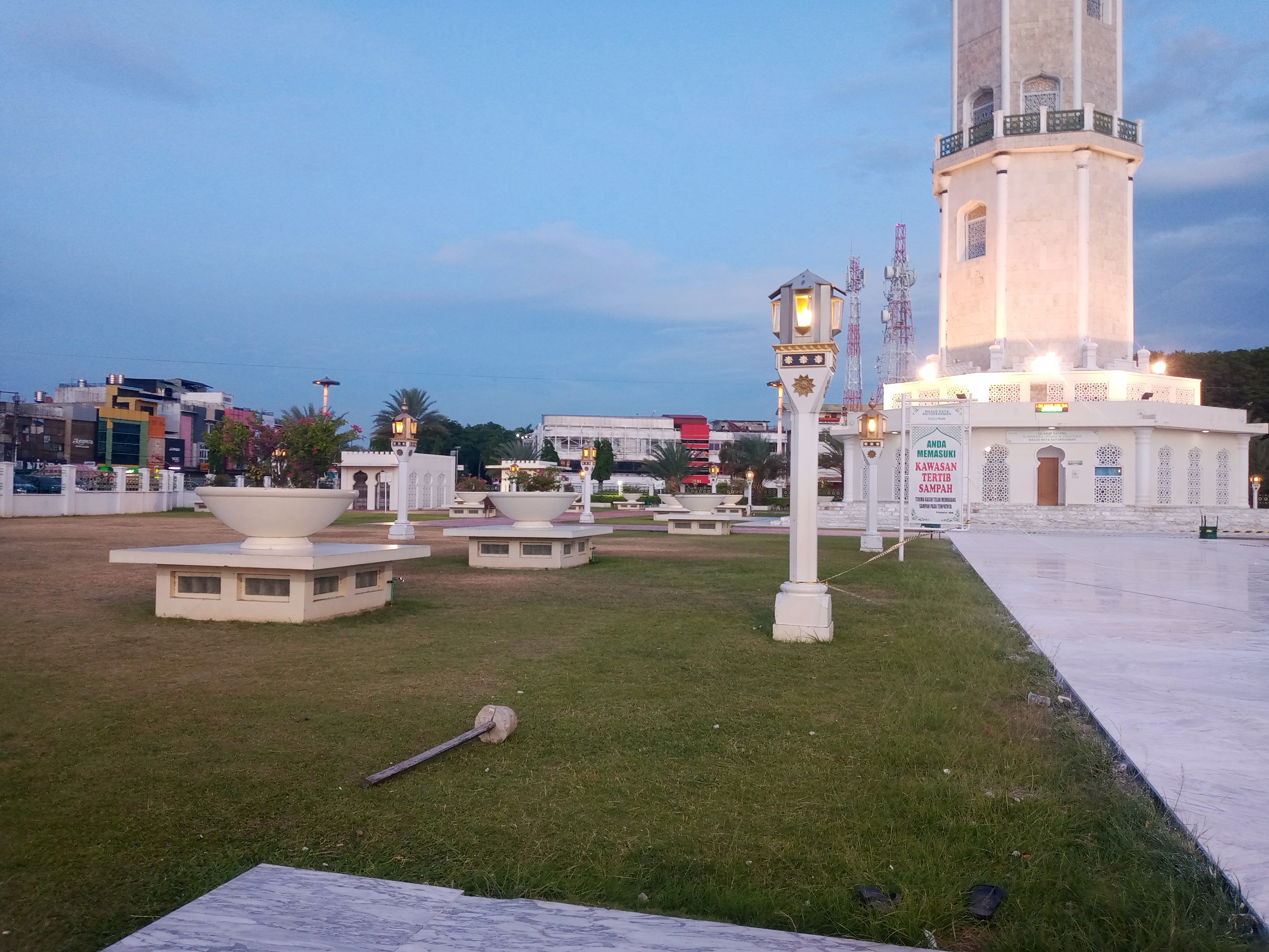 In front of the mosque there is a large green garden to display the beauty of the mosque and make it more lively, decorated with several white lampposts that always decorate the garden and make the garden even more beautiful.