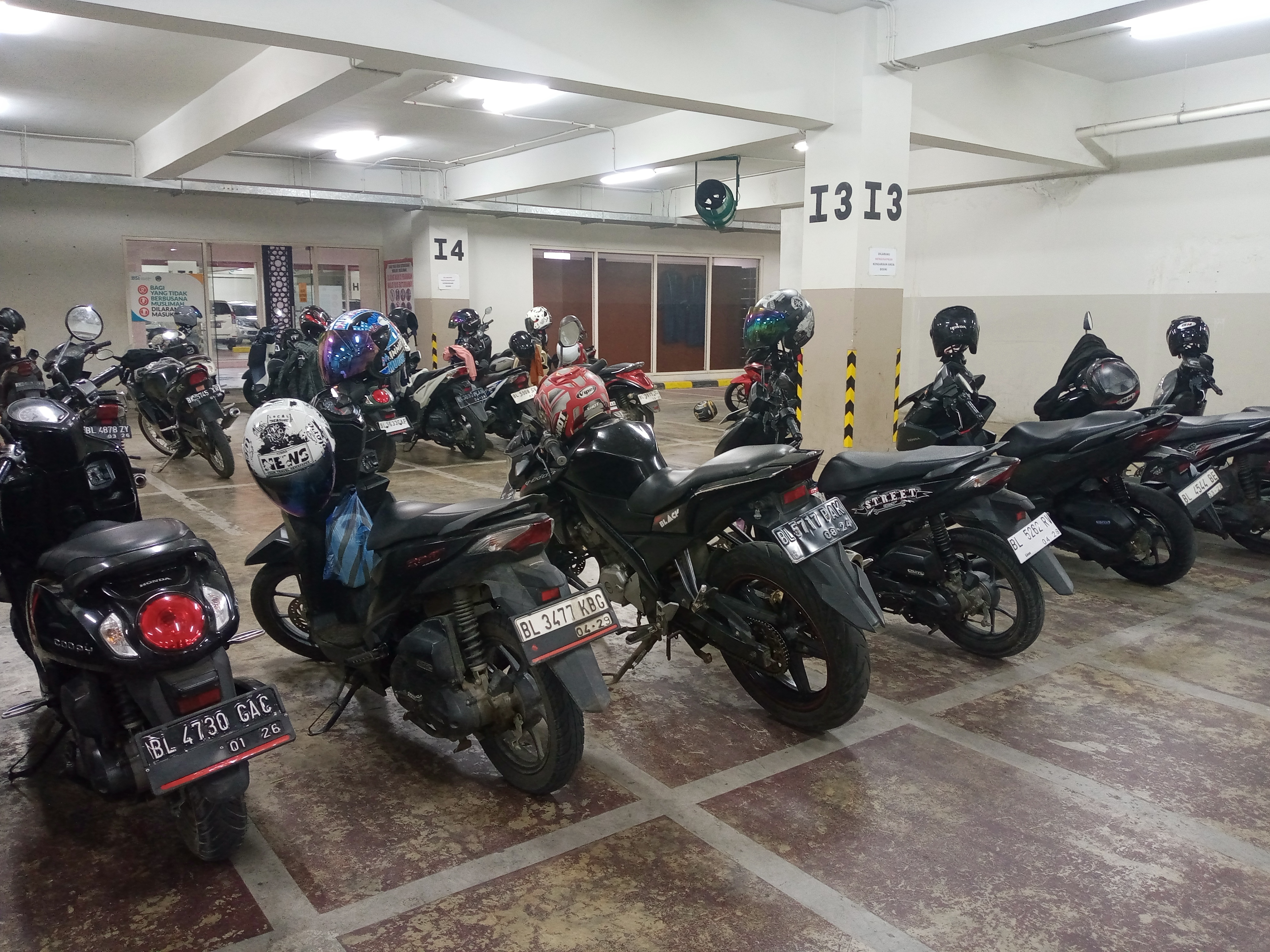 The parking area of the Baiturrahman Grand Mosque is located in the corridor under the mosque which is very spacious, all vehicles are directed to park their vehicles under the Baiturrahman Grand Mosque building because with tight security and equipped with surveillance cameras or CCTV, the parking area is so spacious that it can accommodate cars and motorbikes for mosque congregations and visitors.