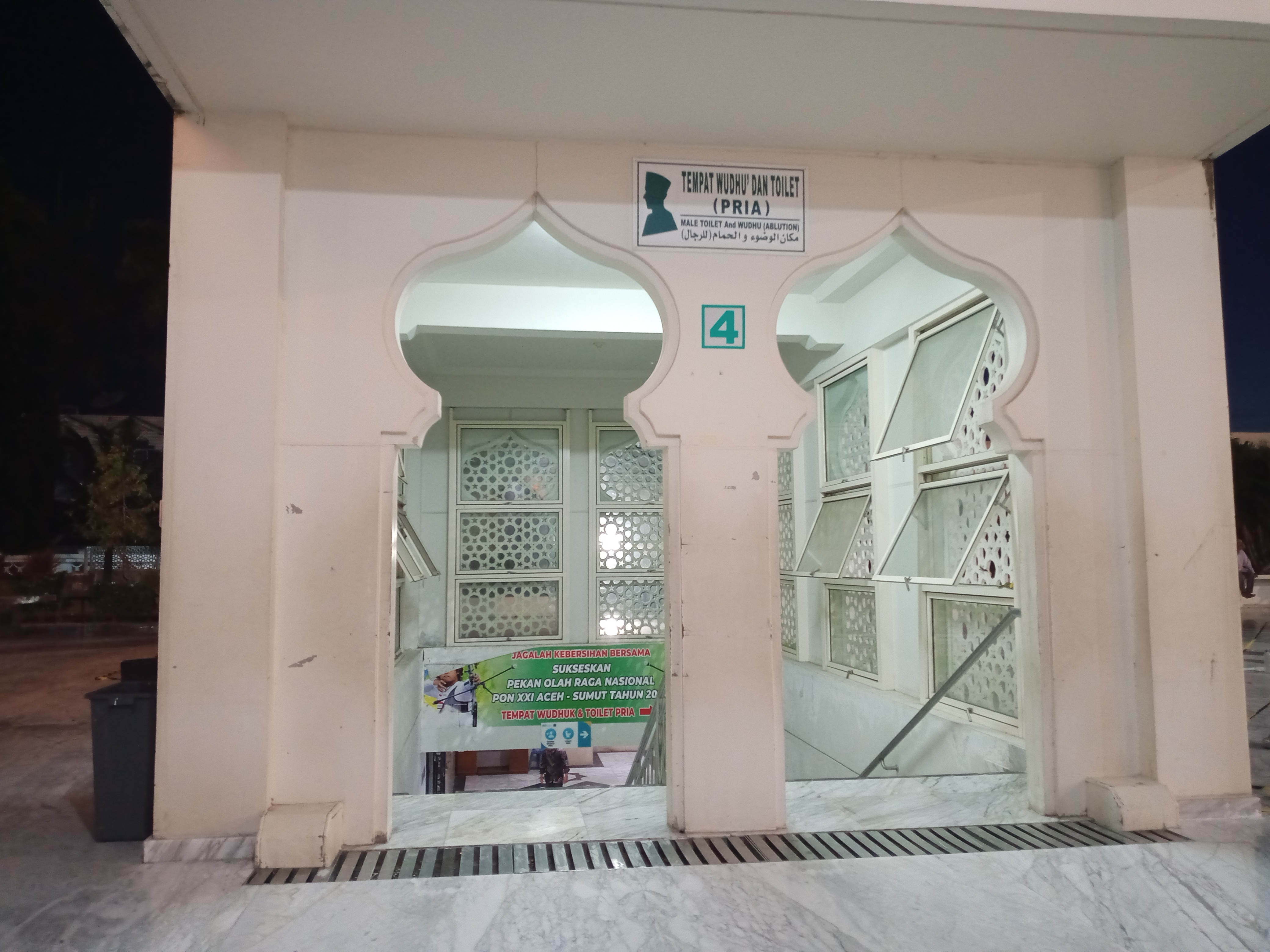 We will go down several steps to get to the ablution area or bathroom, with facilities like this it is easier to separate men and women to meet in a mosque room, the women's area is separate from the men's to prevent meetings and interactions between the two in the room and also to maintain solemnity in worship.