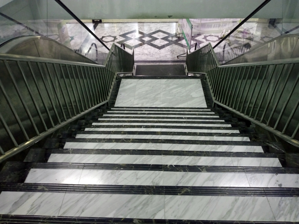 Entering and walking in the lower corridor after parking, stairs have been provided to enter the front yard of the Baiturrahman Grand Mosque in Banda Aceh. We will find two separate stairs leading up here. On the right side there are stairs for men and on the left side for women. This is very important to prevent crowding between men and women and anything that could disrupt comfort.
