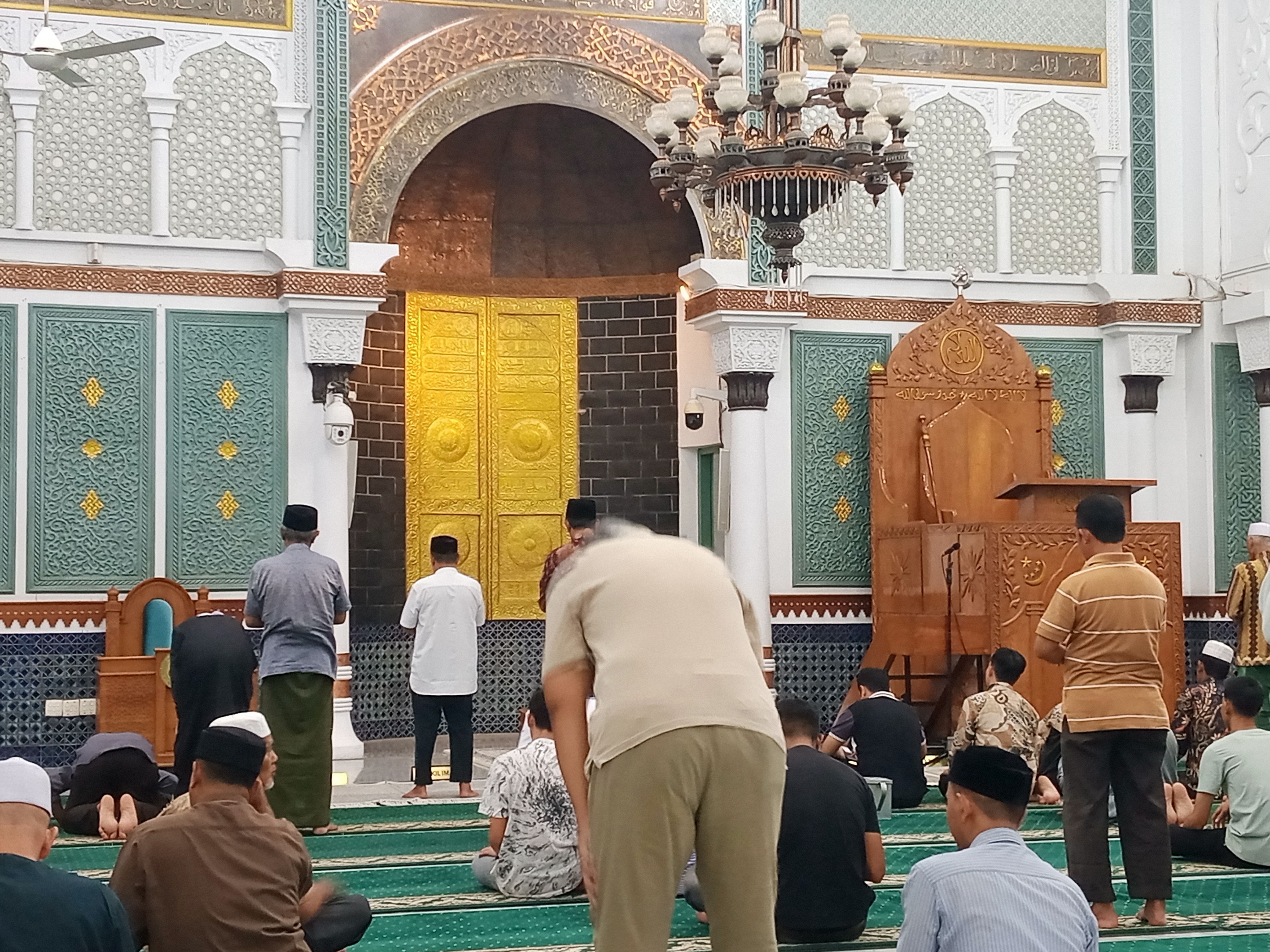 The Imam is at the front in the yellow calligraphy section who will lead the congregational prayer, beside the place of faith stands a pulpit made of very beautiful teak wood, on this pulpit the Imam will give a little advice, lecture and prayer to the congregation.