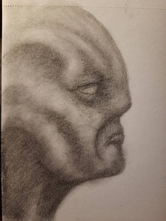 The process for this started with laying down a rough shape with a cotton ball and black pastel chalk, I then use a cotton bud to refine the shapes before using Staedtler Mars black pencils. (4B,8B)