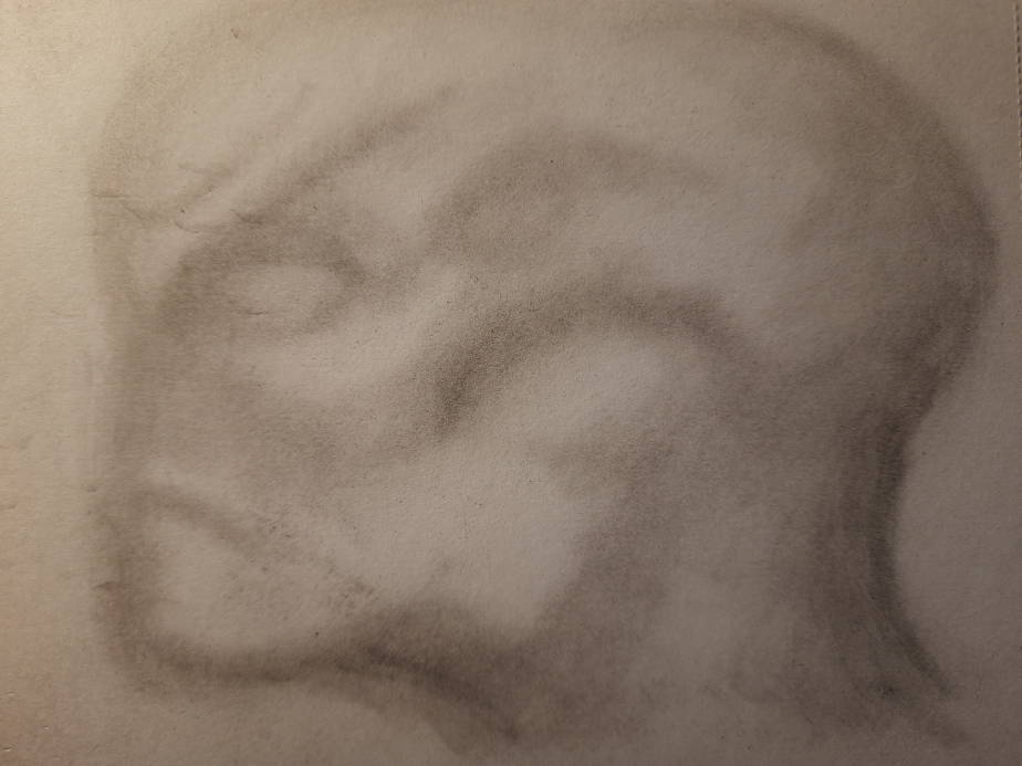 The process for this started with laying down a rough shape with a cotton ball and black pastel chalk, I then use a cotton bud to refine the shapes before using Staedtler Mars black pencils. (4B,8B)