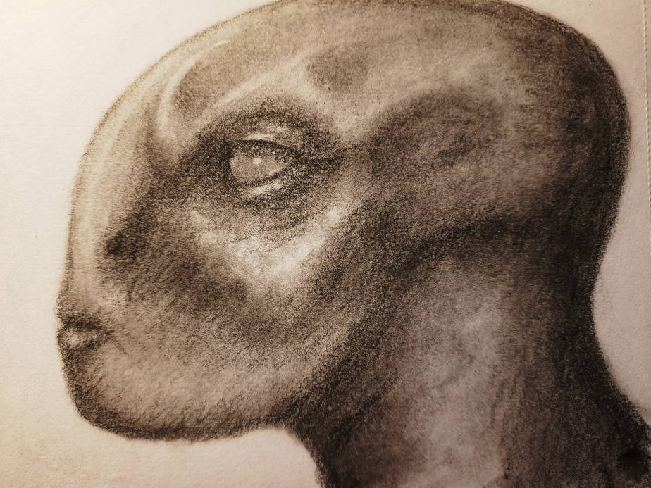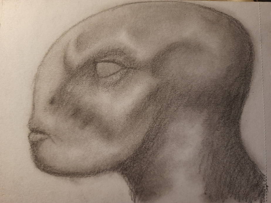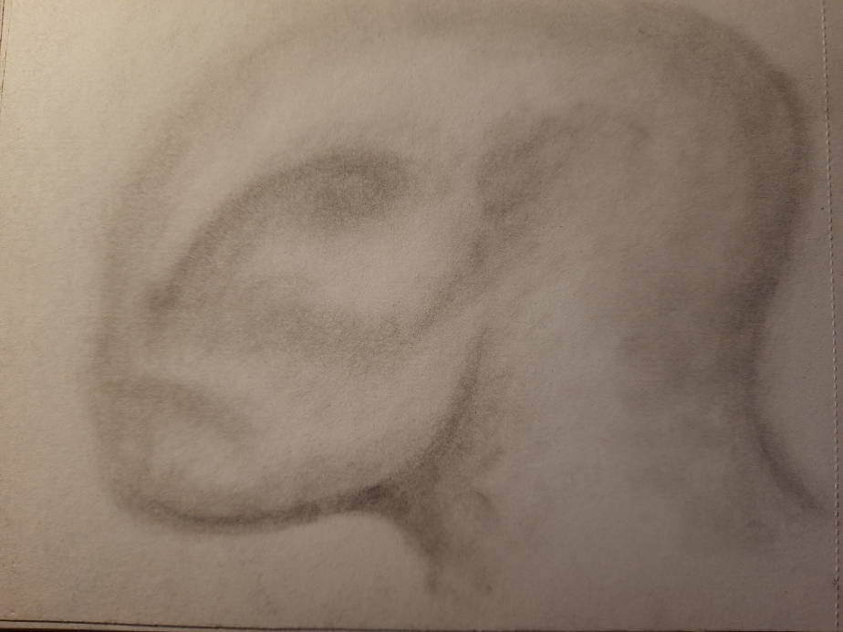 The process for this started with laying down a rough shape with a cotton ball and black pastel chalk, I then use a cotton bud to refine the shapes before using Staedtler Mars black pencils. (4B,8B)