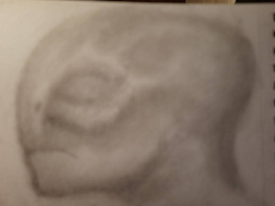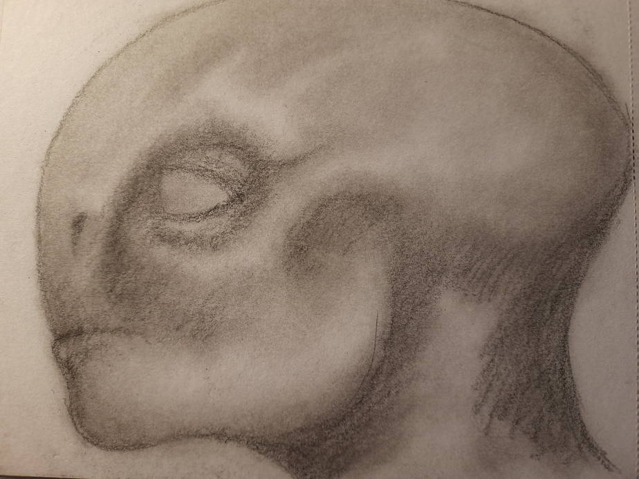 The process for this started with laying down a rough shape with a cotton ball and black pastel chalk, I then use a cotton bud to refine the shapes before using Staedtler Mars black pencils. (4B,8B)