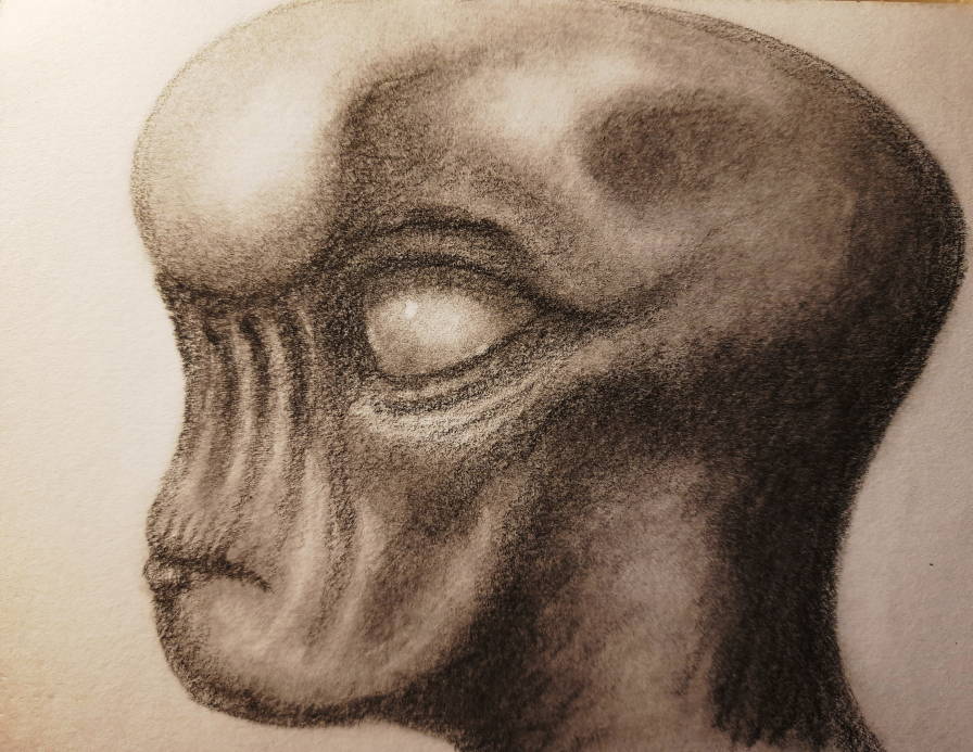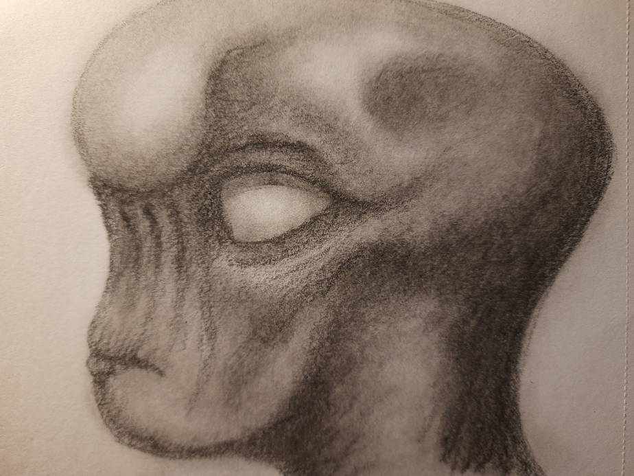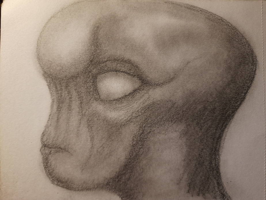 The process for this started with laying down a rough shape with a cotton ball and black pastel chalk, I then use a cotton bud to refine the shapes before using Staedtler Mars black pencils. (4B,8B)