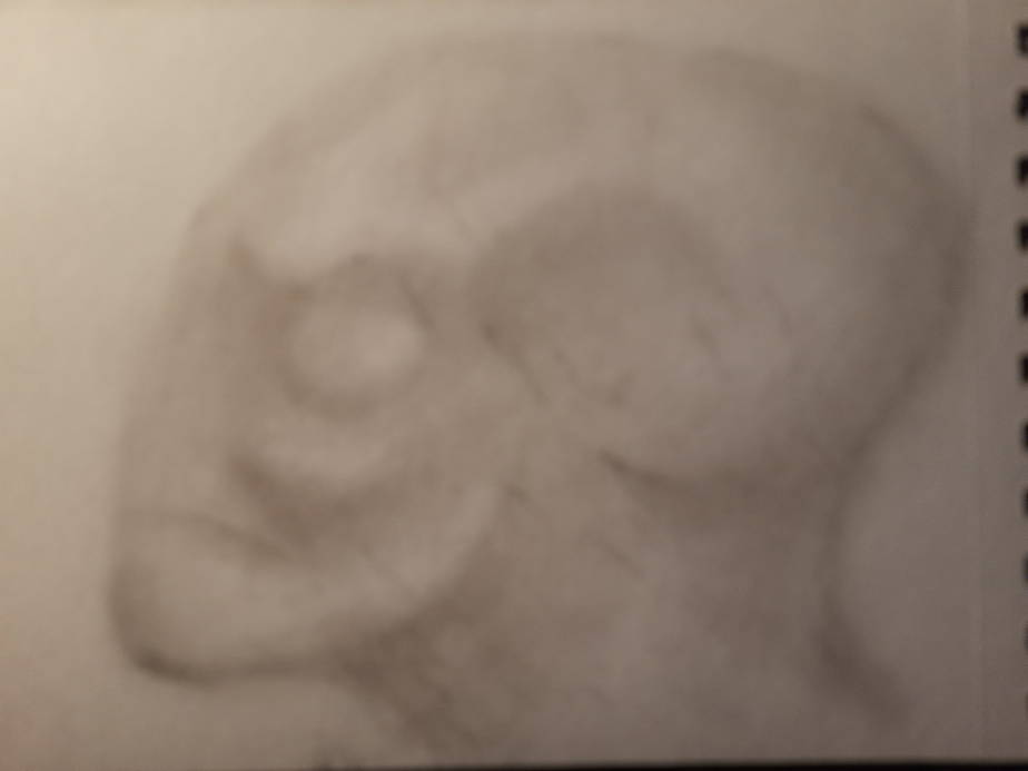The process for this started with laying down a rough shape with a cotton ball and black pastel chalk, I then use a cotton bud to refine the shapes before using Staedtler Mars black pencils. (4B,8B)