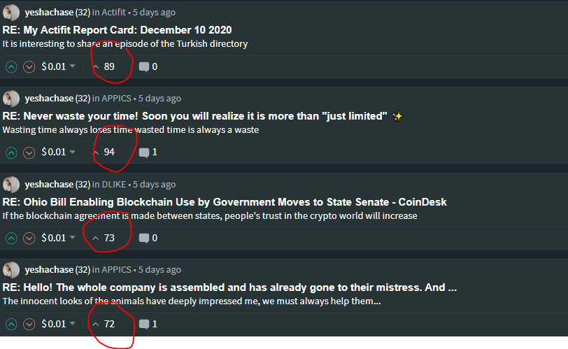 The Comment Farmers are using the same 15SP Army we found 10 days ago farming rewards but this time its only around 80 x 15sp accounts upvoting comments.