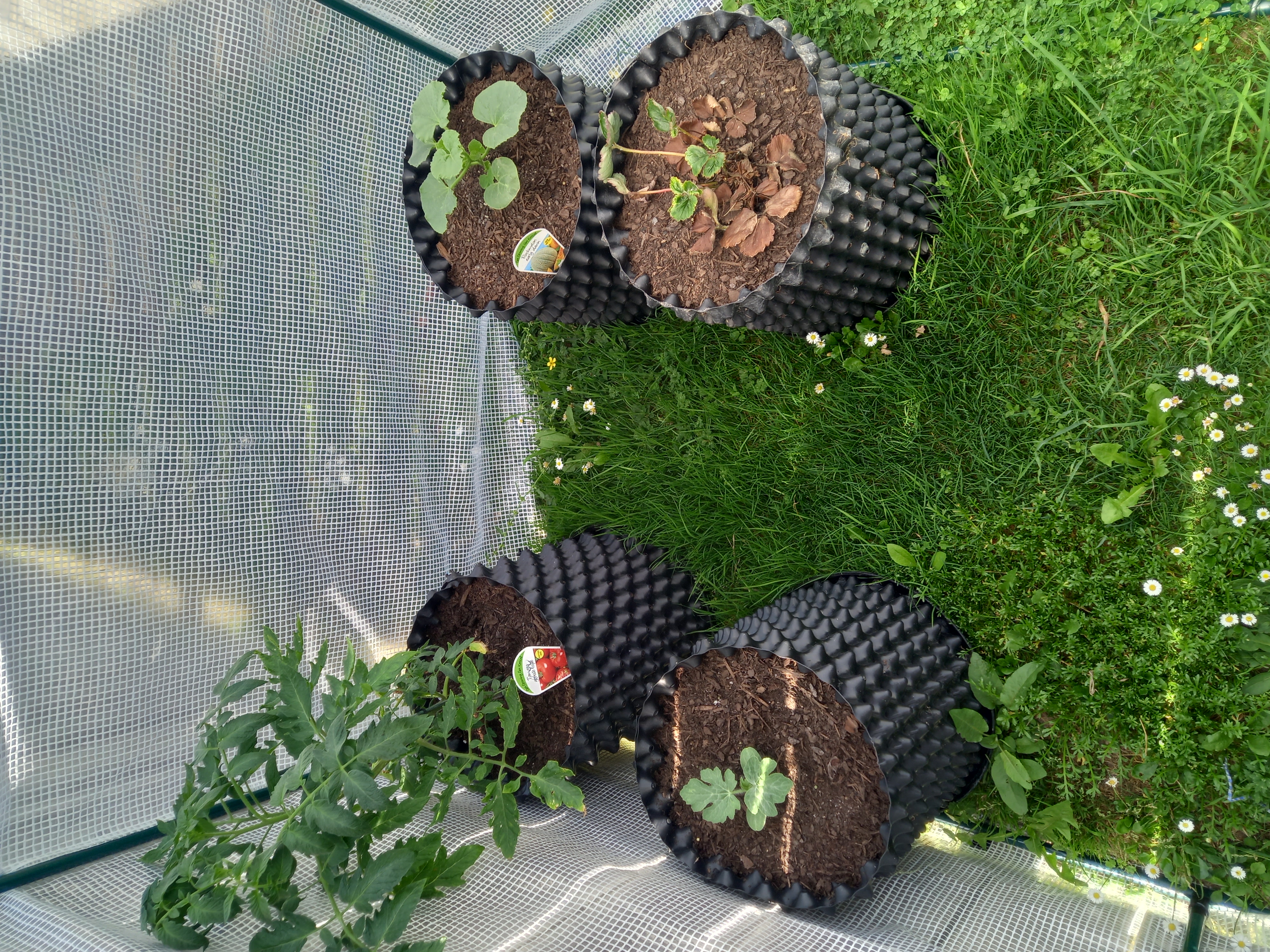Here is our vegetable garden which is going along nicely, i do think the sister watermelon plant is liking the hothouse more than the veggie garden.