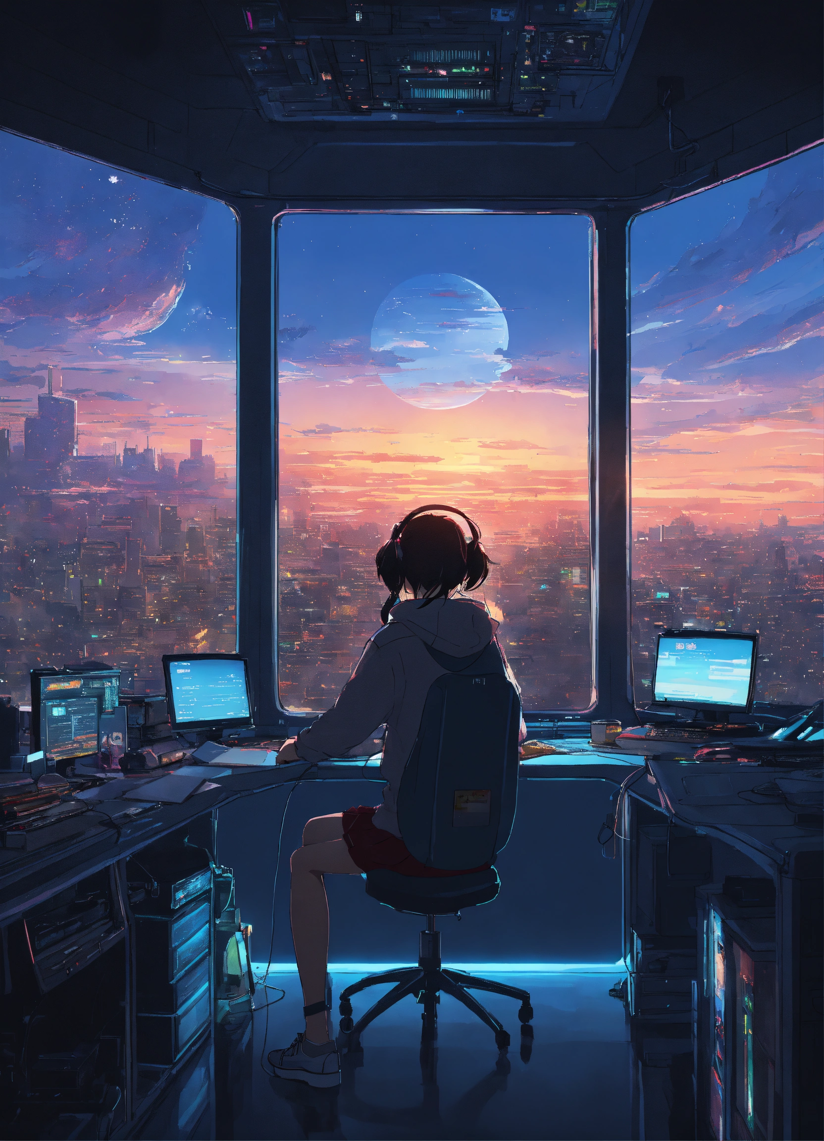 She always rented accommodation on the very top floors, overlooking the city, clouds and the sun and the moon!