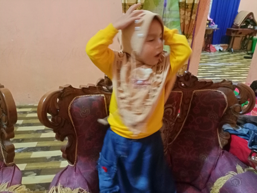 Learning to wear clothes, or to wear the hijab is very important, and they must be trained from an early age, in our place, aceh-Indonesia, every adult is required to wear the hijab and dress neatly, that's why I also teach my children to dress neatly and wear clothes. hijab, so that in the future they can wear neat clothes, and can teach others.