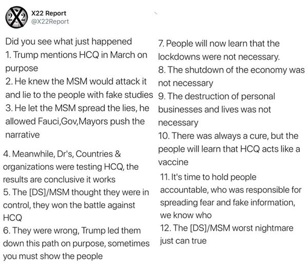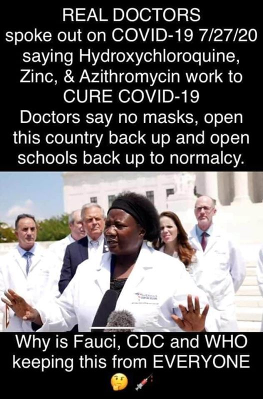 The MSM is censoring this video of a doctor telling the American public about the CURE for COVID 19 hydroxychloroquine (HCQ).
