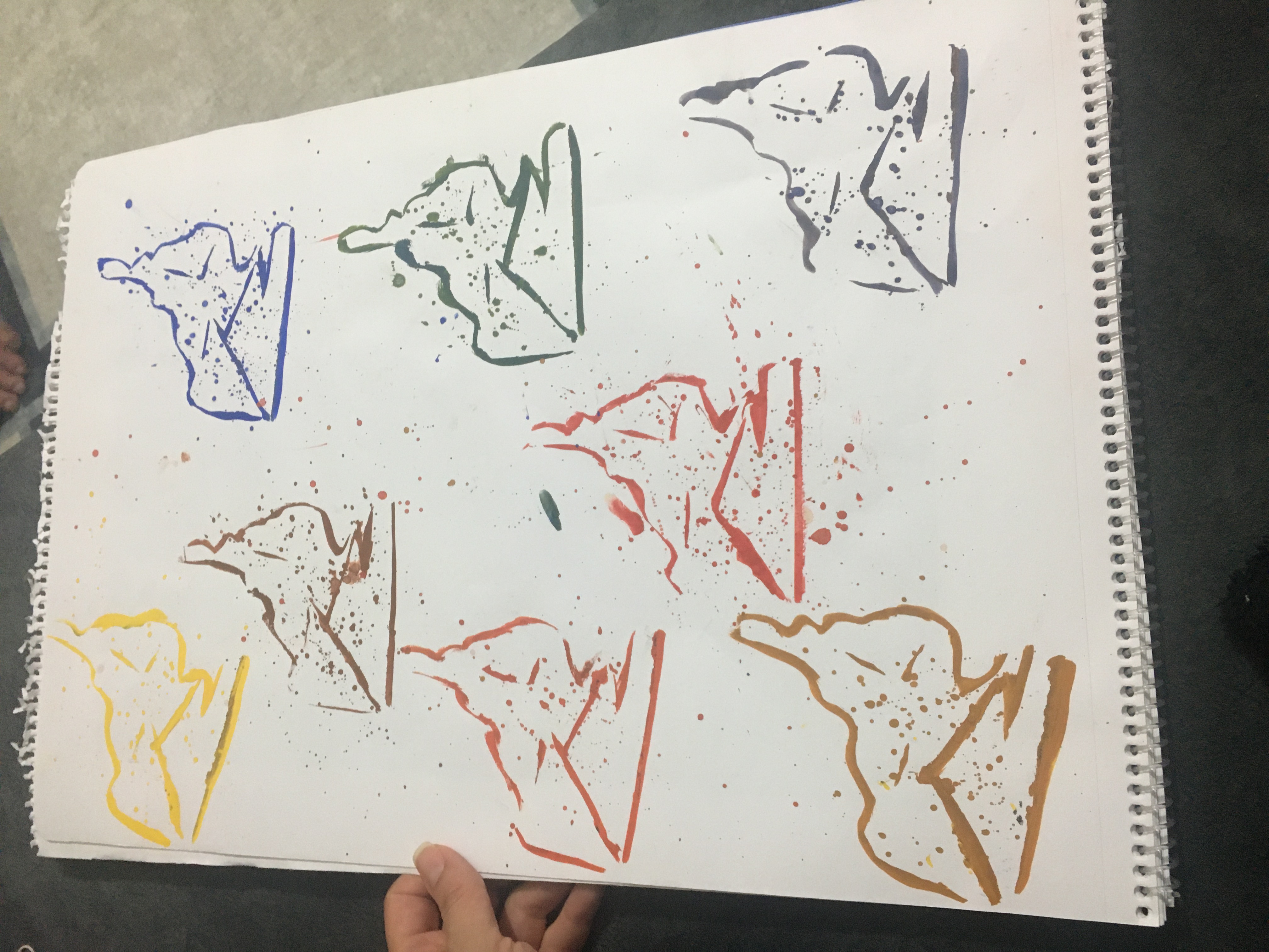 Then I did gouache painting. I cut the paper in a similar way to a shoe. I made this design by applying different colors to the edges. I think it could be a nice summer dress pattern. Especially on white.