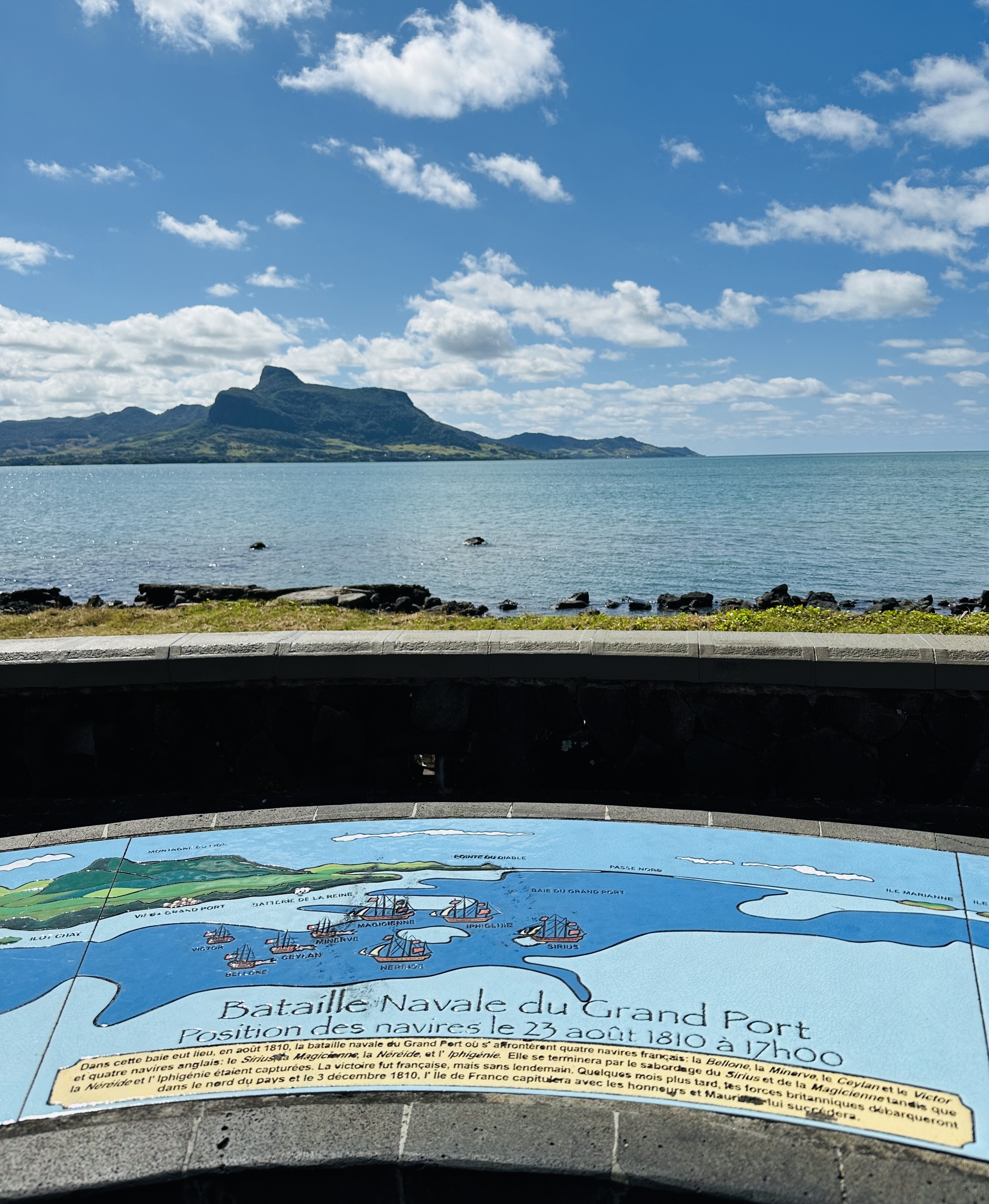 After doing some work/delivery near Mahebourg, we started our day at the Grand Port naval battle site, where I showed her the small but meaningful memorial dedicated to this incredible piece of history.