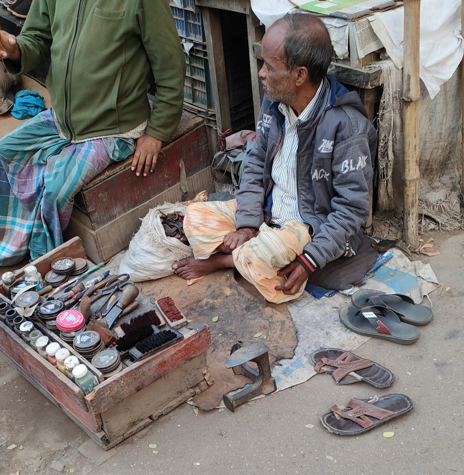 Cobbler is a professional identity in the general sense. We all must know about cobbler. We all see that in the city or the village bazaar, sitting in a corner in a small hut, sitting on the flat ground with a needle and black thick strong thread. But the cobbler sat for a long time and waited for the customer to come. Not all customers sew or polish shoes anymore. But those who come may bring old and torn shoes and sew them. Again many senior officers were seen bringing their shoes to be colored-polished. In exchange for this, shoe stitching is 10 taka and shoe color-polishing is 50 taka. Not many customers come to them throughout the day.