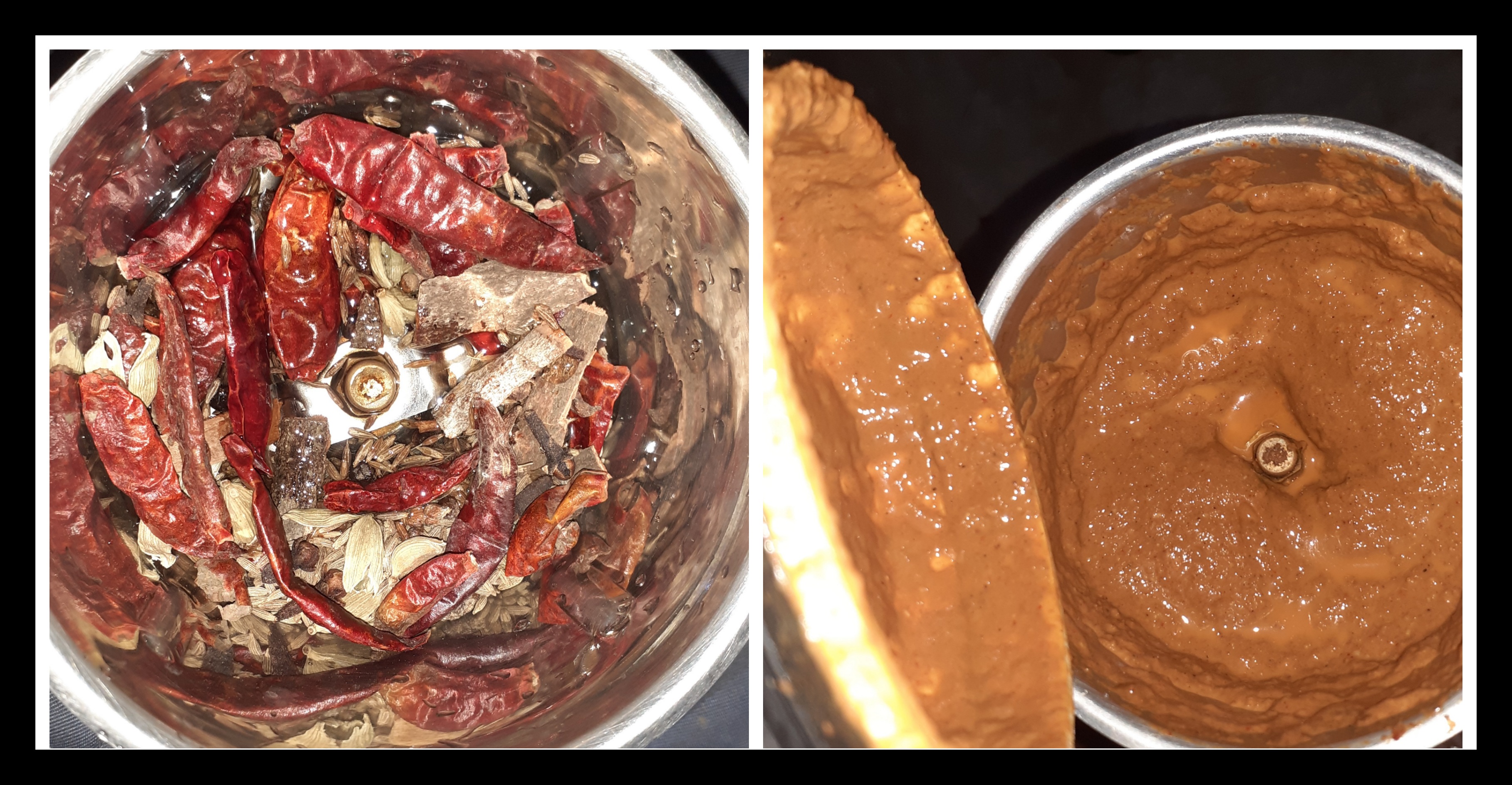 ➤জিরে, মরিচ, লবঙ্গ, দারুচিনি, শুকনো লঙ্কা, আদা মিক্সারে করে পেস্ট করে রেখেছিলাম।