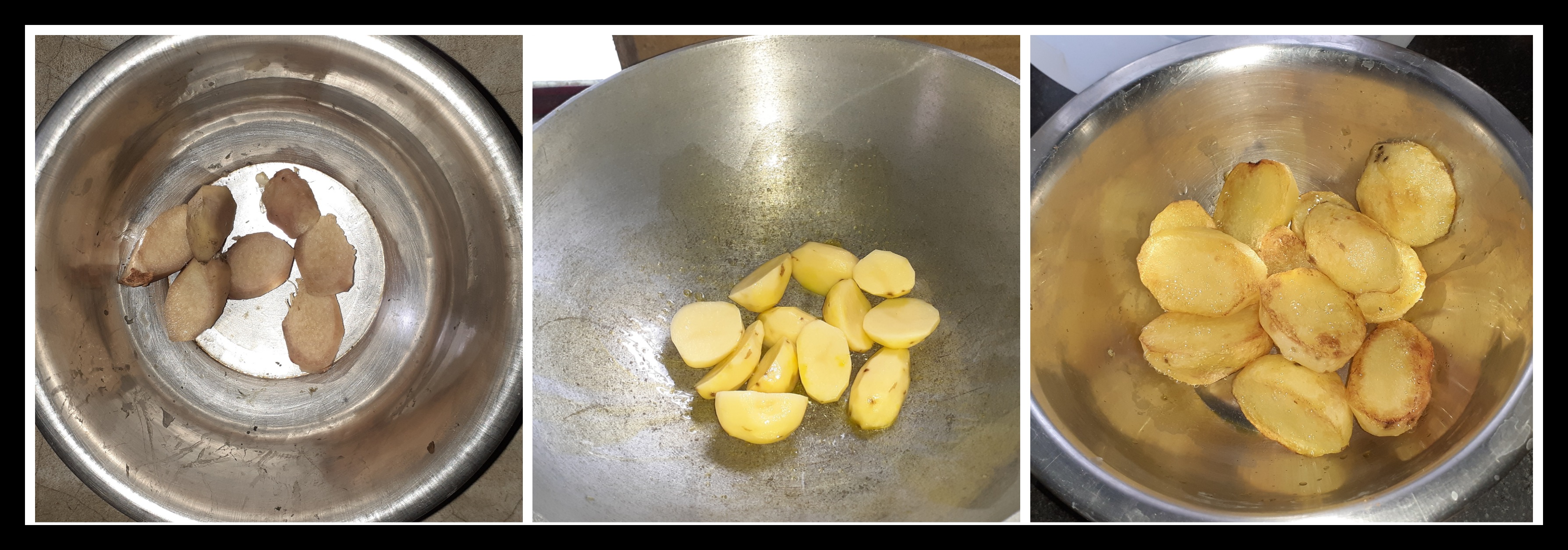 ➤আদার খোসা ছালিয়ে কেটে নিয়েছিলাম। এরপর আলু লাল মতো করে ভেজে নিয়েছিলাম।