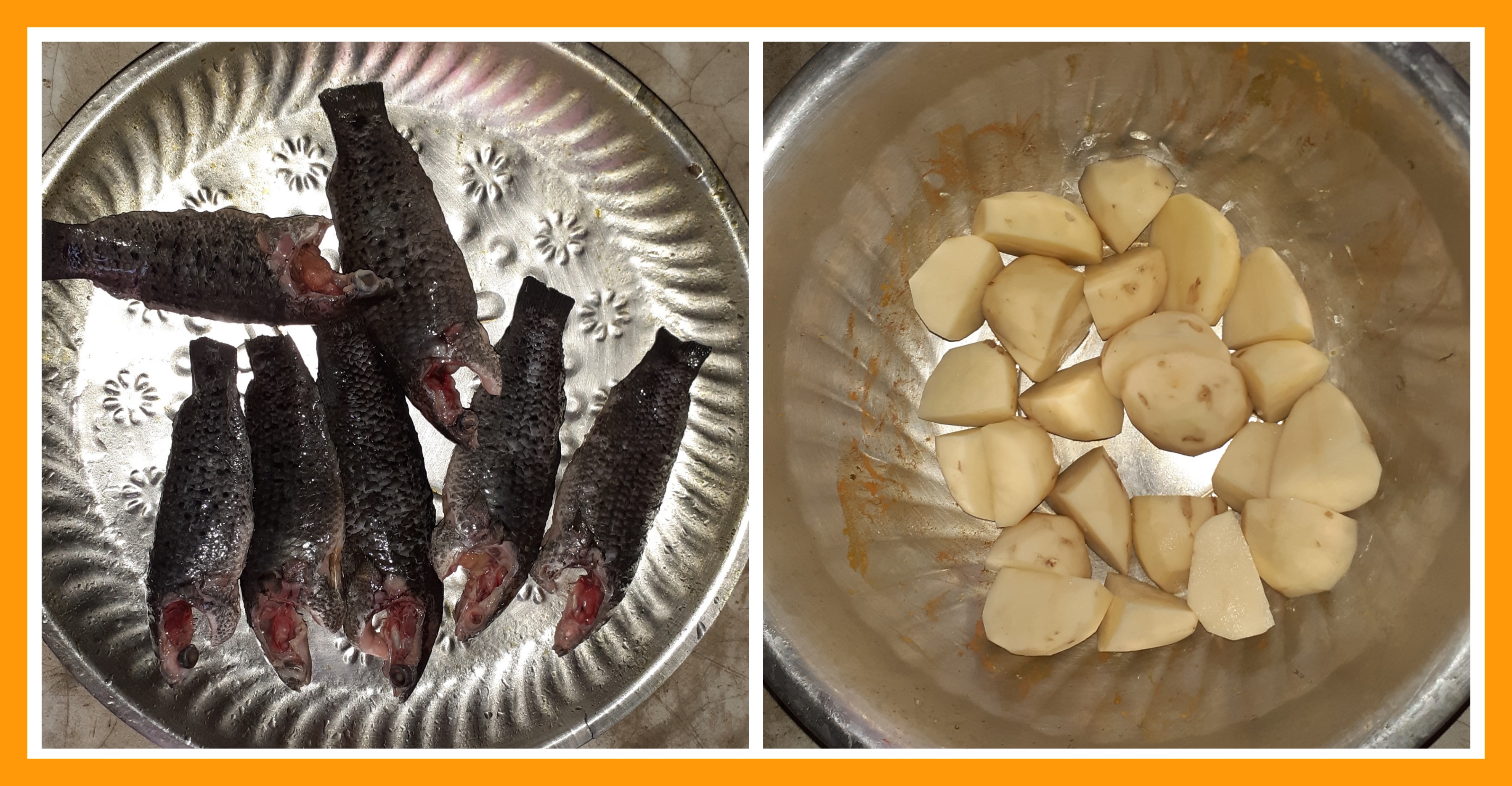 ➤প্রথমে কই মাছগুলোকে ভালোভাবে কেটে নিতে হবে এবং পরে তা জল দিয়ে ধুয়ে পরিষ্কার করে নিতে হবে। এরপর আলুগুলোর খোসা ছালিয়ে নিয়ে কেটে পিচ পিচ করে নিয়েছিলাম এবং জলে ধুয়ে নিয়েছিলাম।