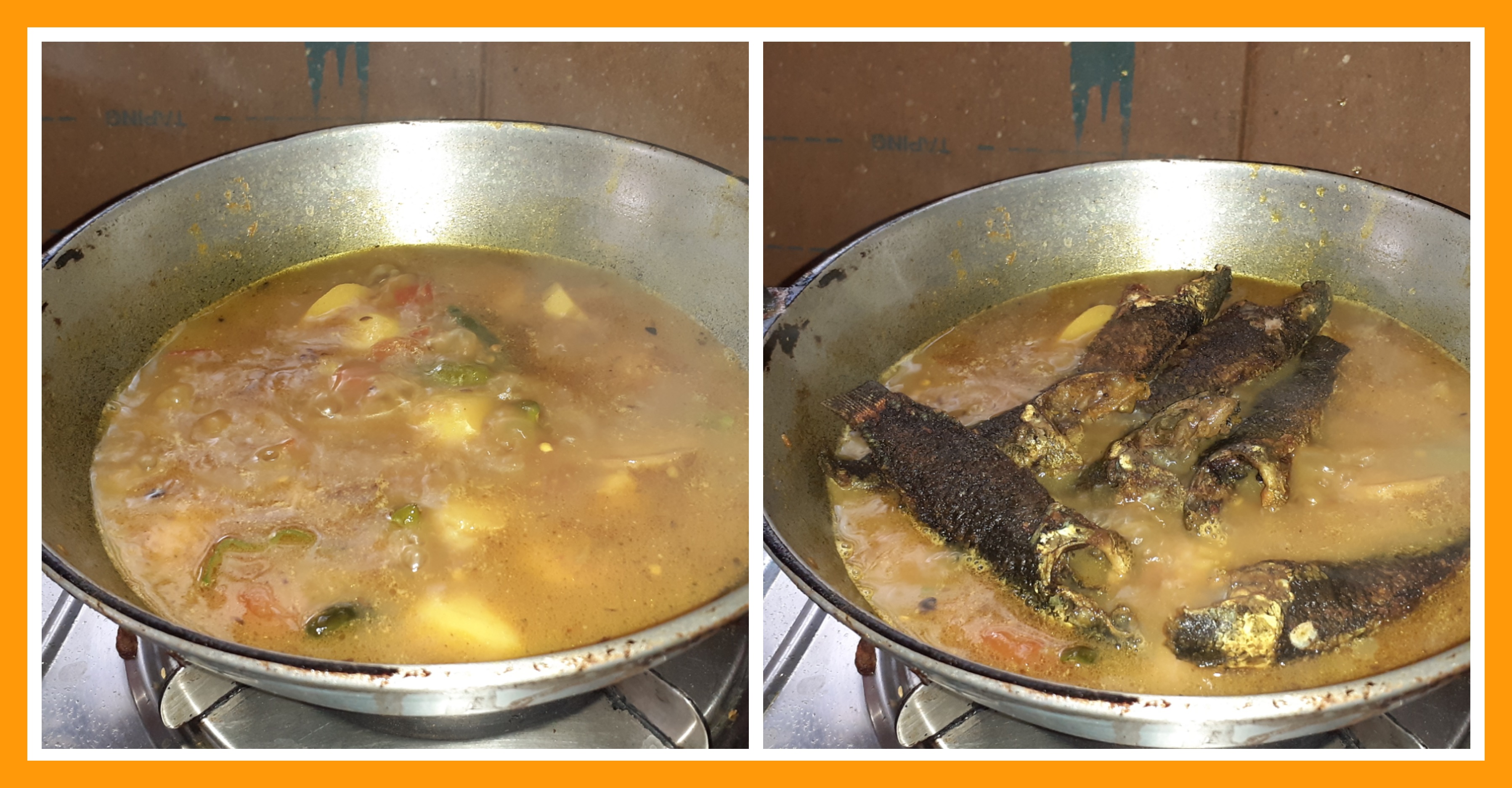 ➤তরকারিটা মিডিয়াম আঁচে কিছুক্ষন ফুটিয়ে নিয়েছিলাম এবং পরে তাতে ভেজে রাখা কই মাছের পিচগুলো দিয়ে দিয়েছিলাম।