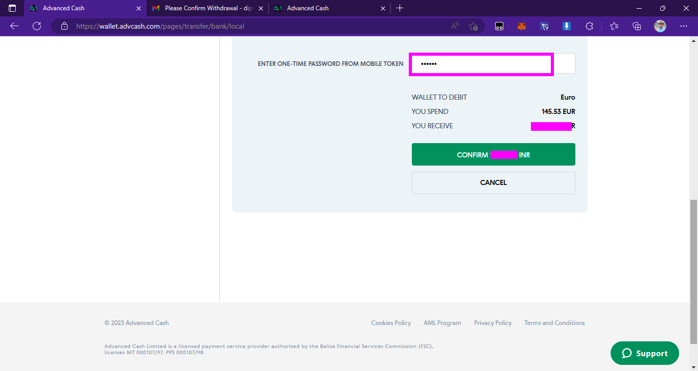 ➤ত্রয়োদশ পর্যায়ে, আপনার ওয়ালেটে two factor authentication চালু থাকলে আপনার মোবাইলে সেইটার একটা টোকেন নম্বর থাকবে ৬ সংখ্যার যেটা লাস্ট প্রসেসে এসে আপনার ফান্ড এর সেফটির জন্য আরেকবার কন্ফার্ম করার আগে চাইবে। টোকেন নম্বরটা দিয়ে কন্ফার্ম অপশনে ক্লিক করে দিলে আপনার withdrawal কমপ্লিট হয়ে যাবে এবং পরে আপনি home page এ গিয়ে আপনার স্ট্যাটাস দেখতে পারবেন বা চেক করতে পারবেন।