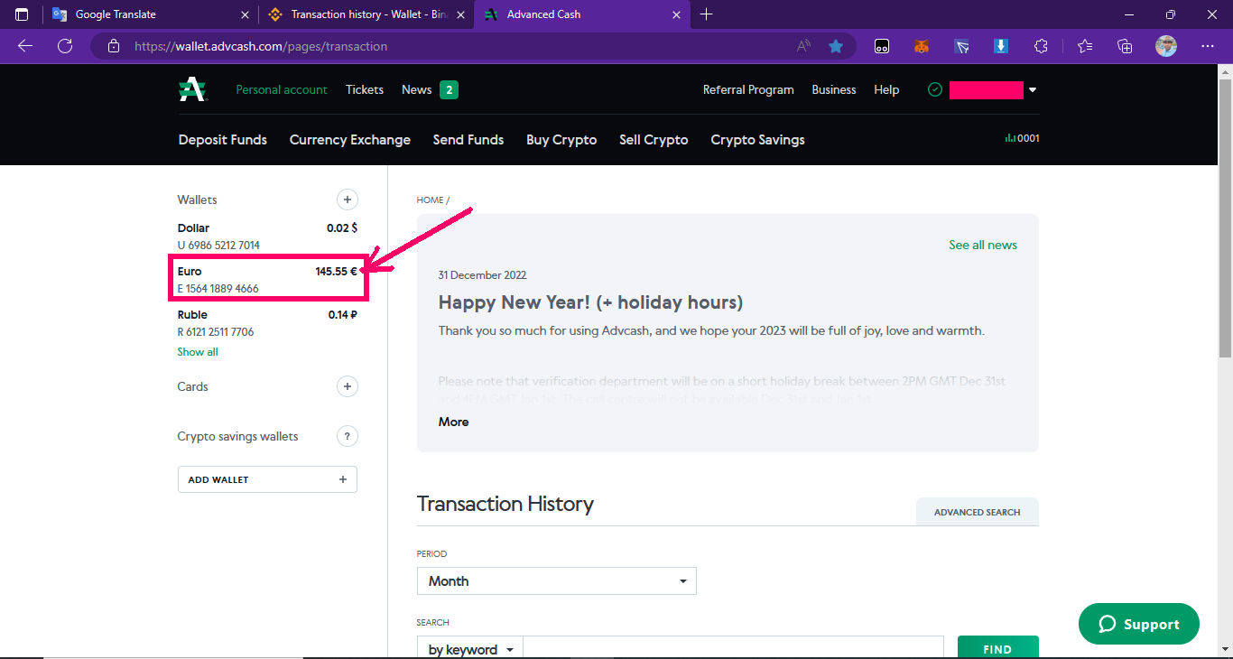 ➤প্রথমে আপনারা যখন অ্যাডভান্সড ক্যাশ ওয়ালেট লগইন করবেন তখন আপনারা ইউরো, ডলার যেটাতেই আনবেন সেটাই দেখতে পাবেন এবং সেইটা আমি মার্ক করে দেখিয়ে দিয়েছি ( মার্ক করা অপশনগুলো ভালো করে লক্ষ্য করবেন )।