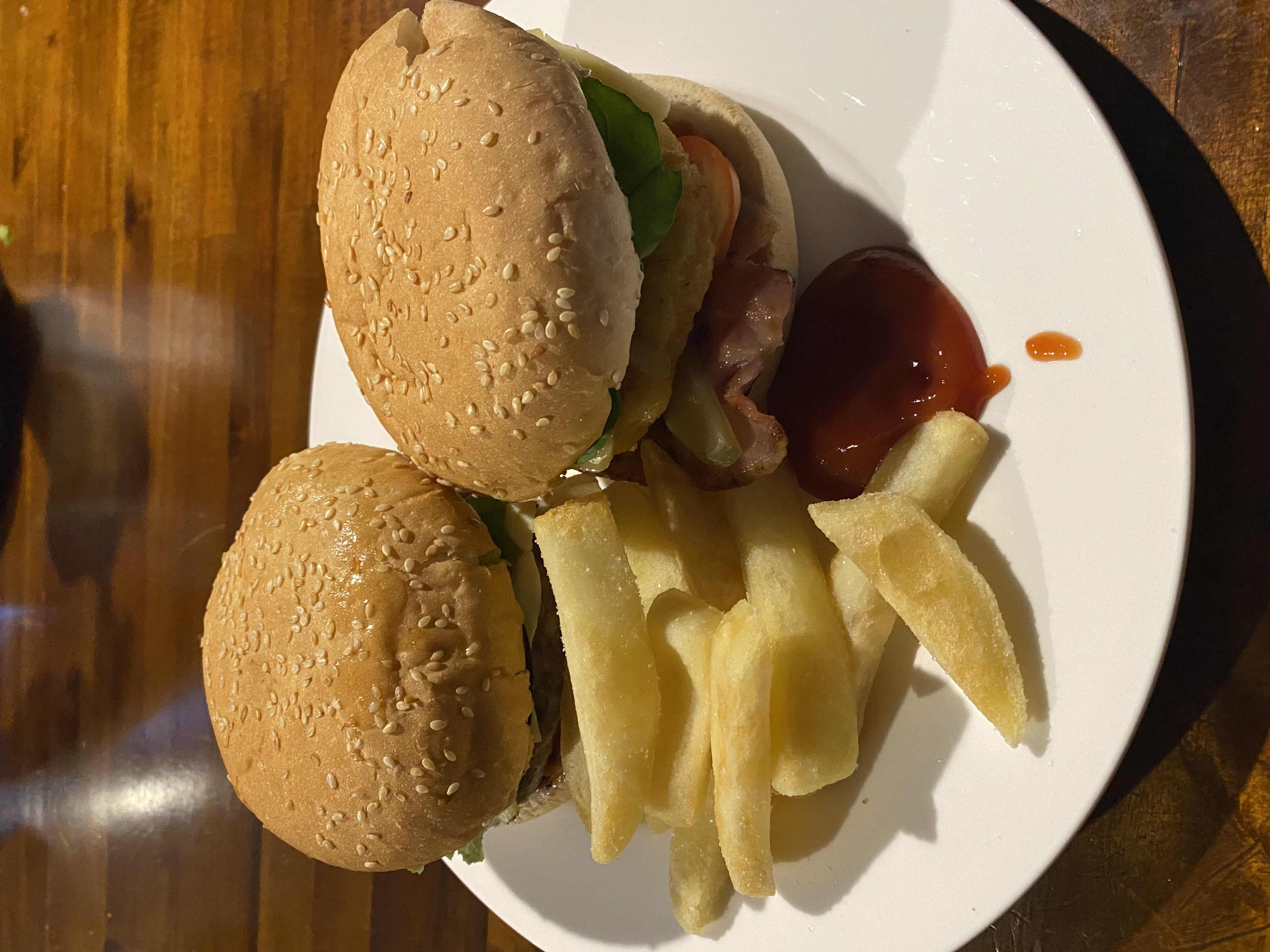 I actually had a Chicken and a Beef burger which i could not finish, got thru 1 & 3 quarters, i think i need to go for a walk as i am rather full.