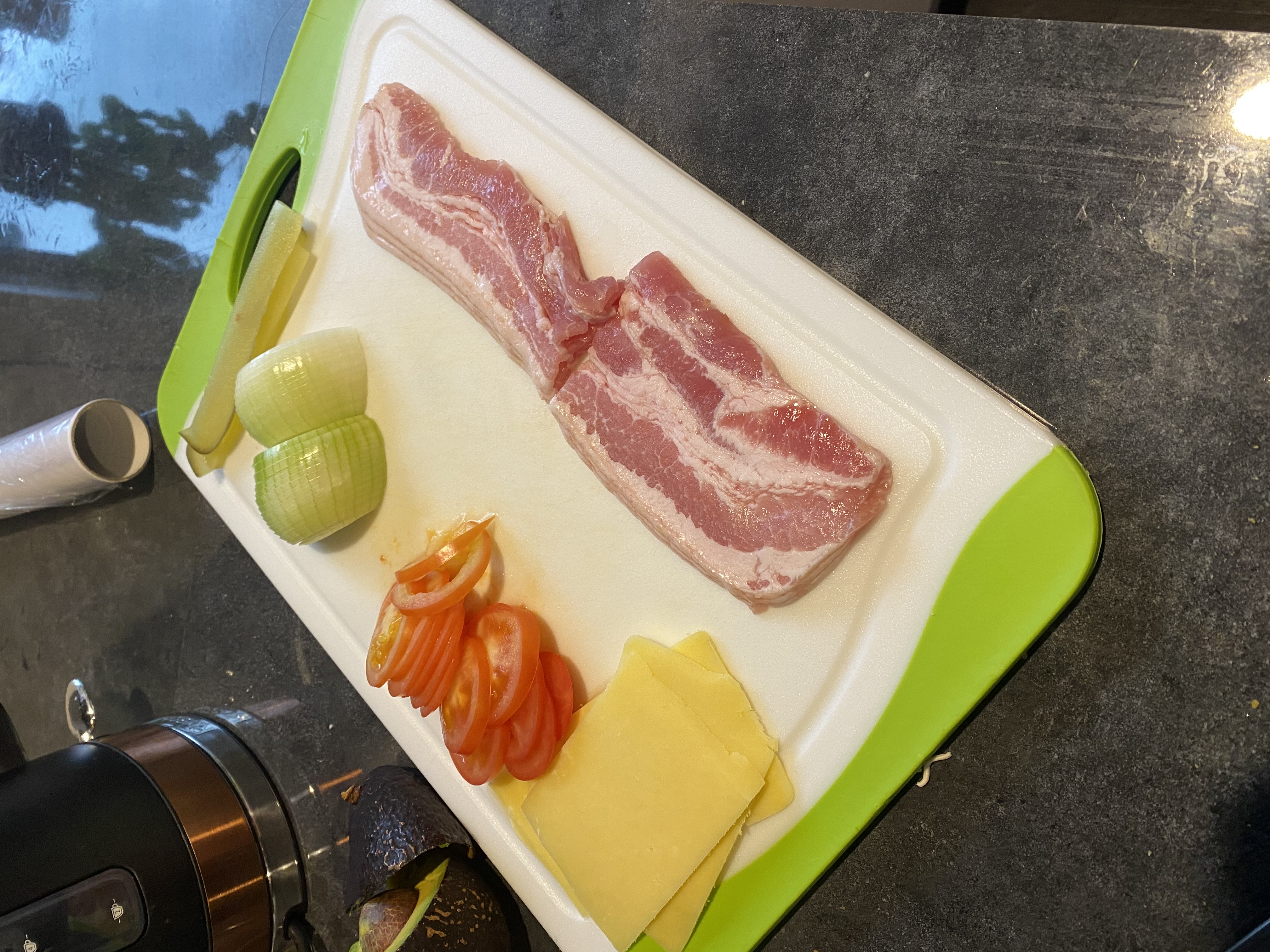 The Burgers would be either Beef or Chicken with Onion cheese tomato lettuce & Avocado - yum
