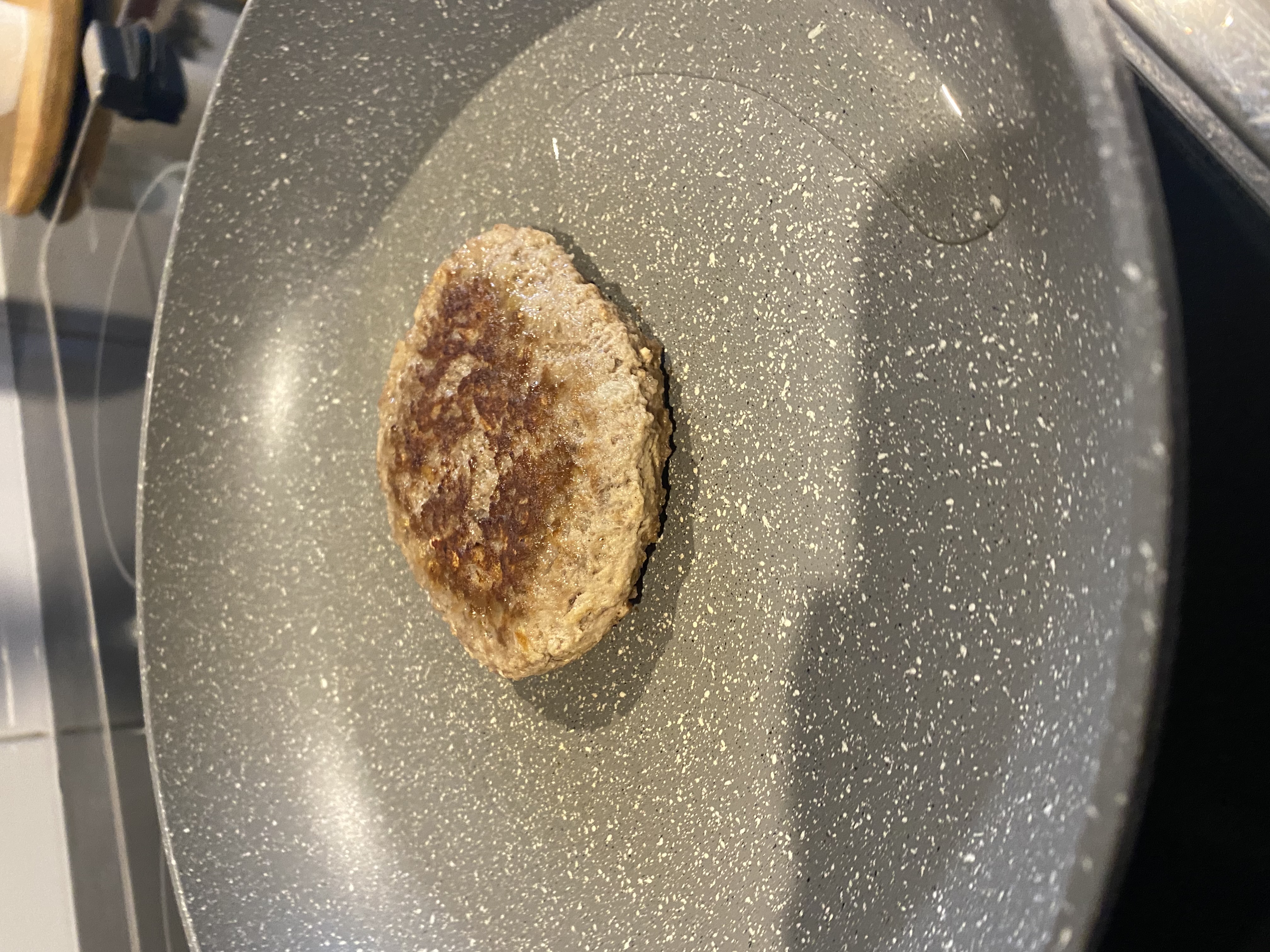On the left is the chicken cooking in the oven and on the right is my Beef burger patty cooking in the pan