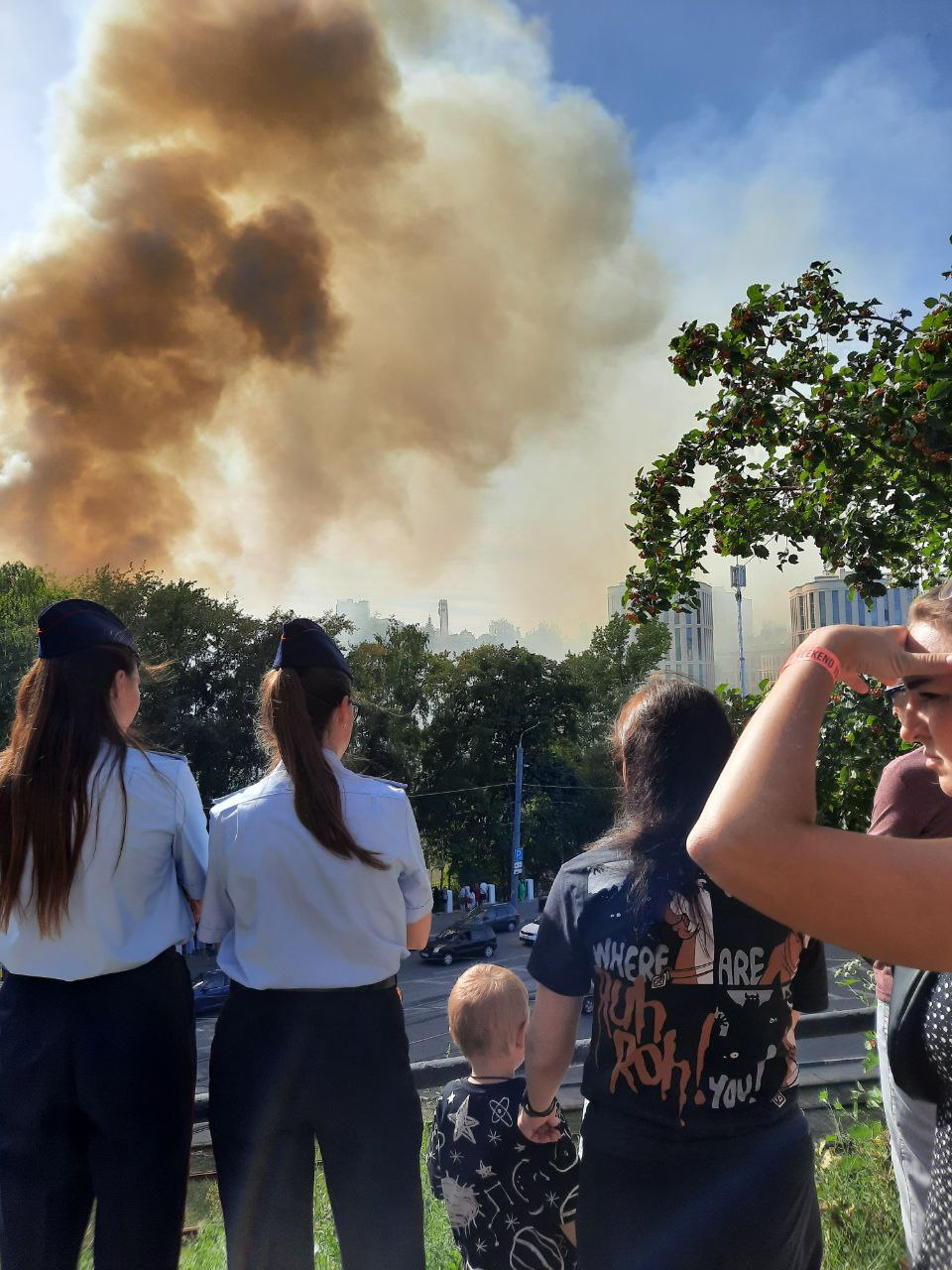 И запах гари. Причем я бы на запах не прореагировала - это уже привычно, лес горит в Воротынском районе. У меня родственник - пожарный. Уехал туда, помогать. Волонтером вроде бы.