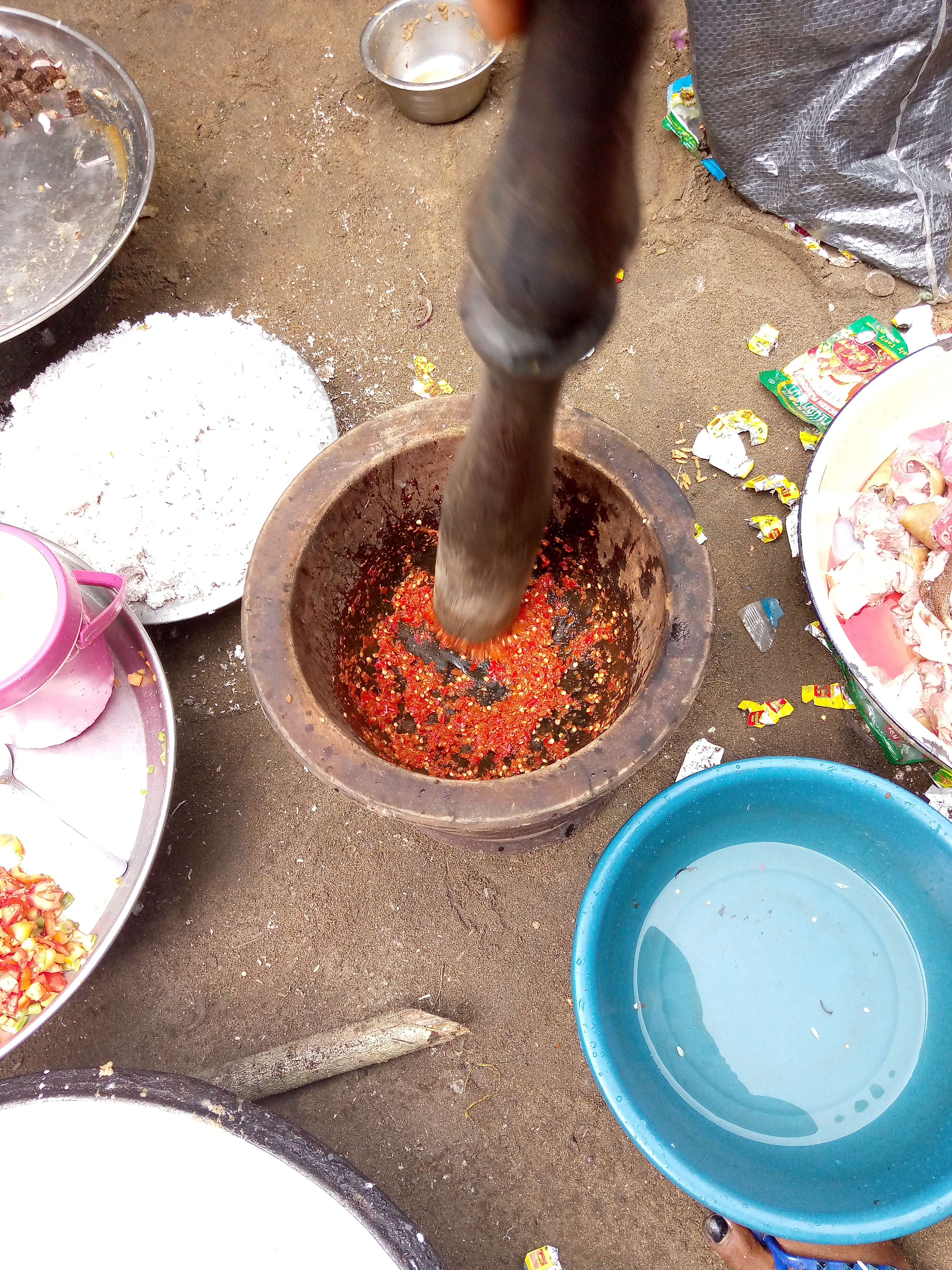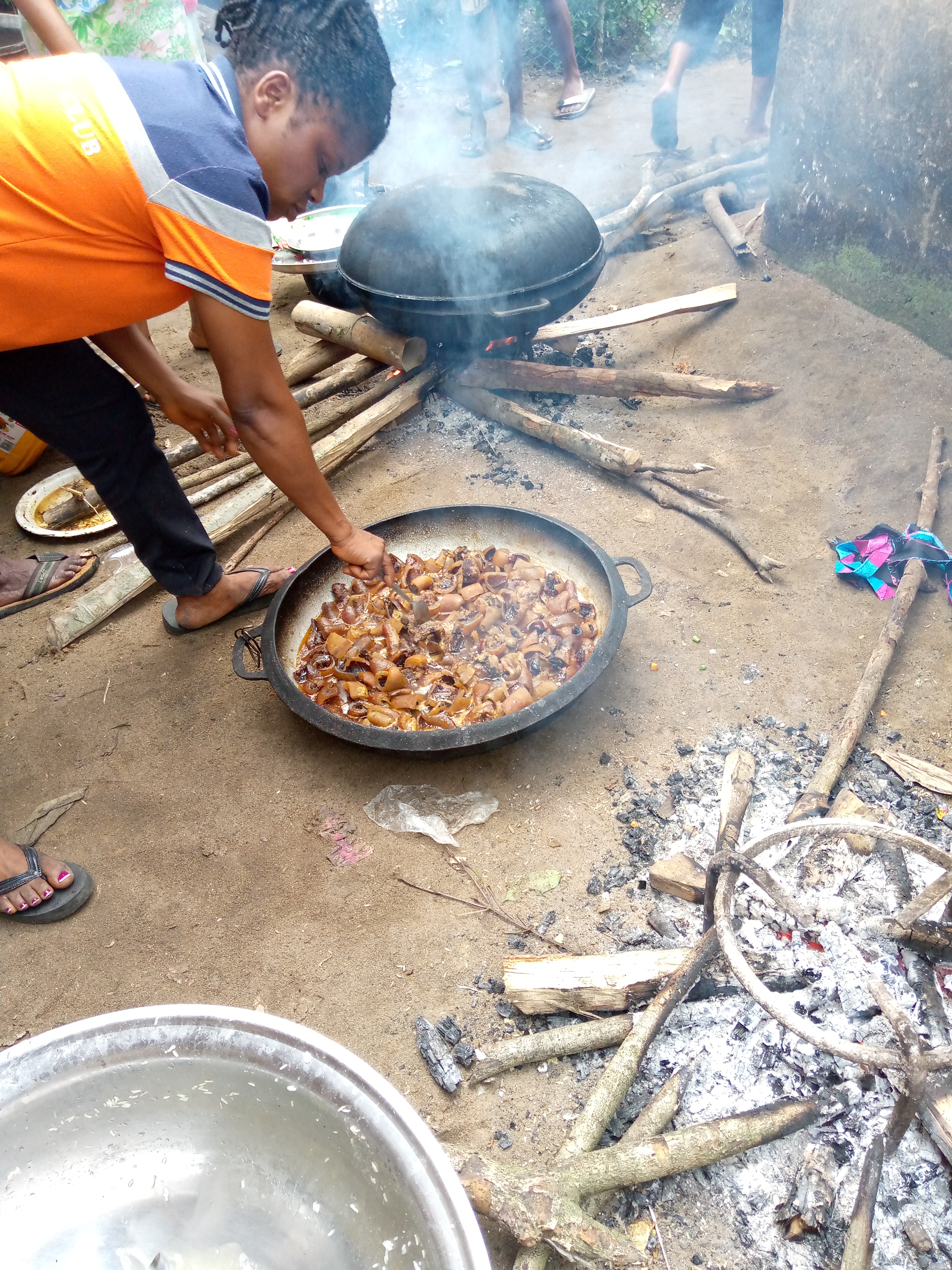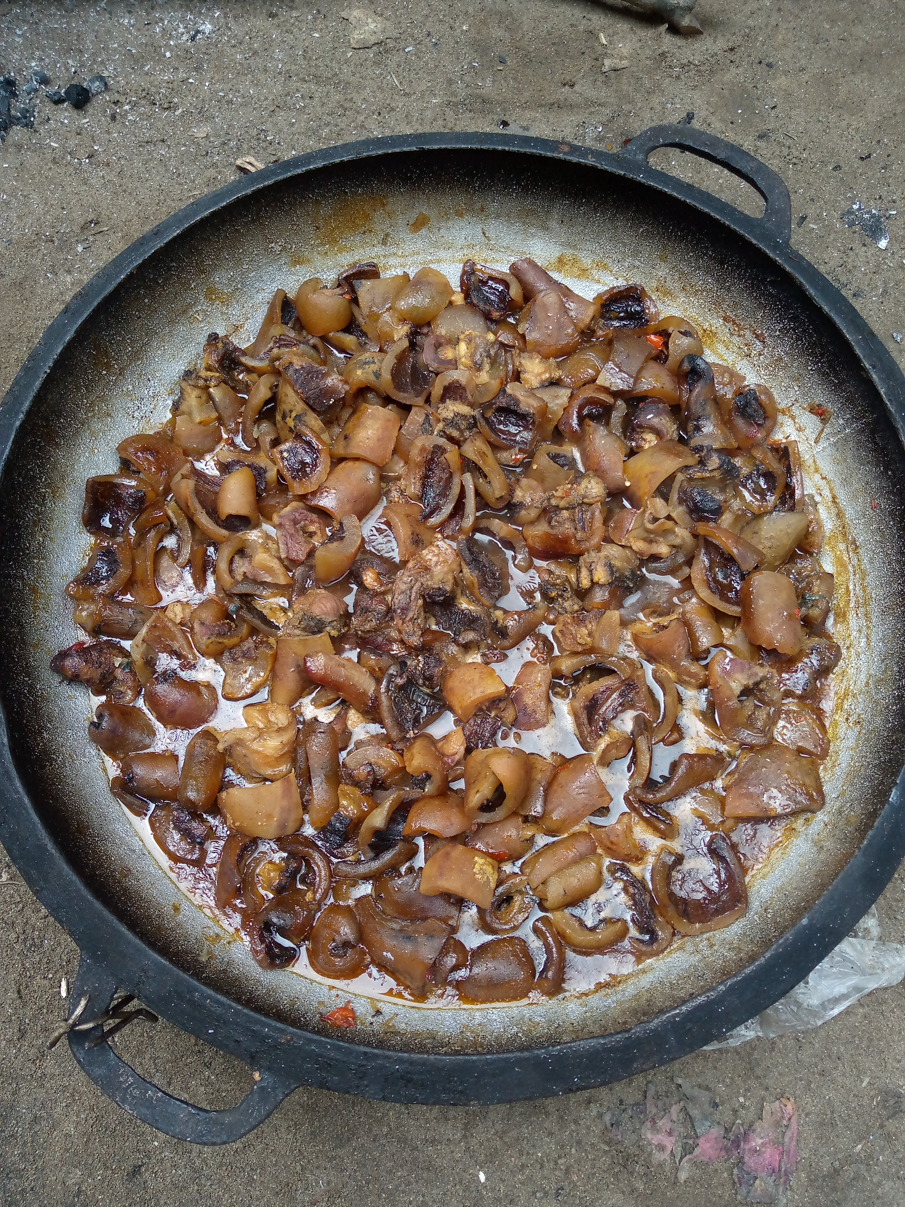 Today I was actively involved in the preparation of a our traditional food called,"edikan ikong" the delicious vegitable soup. In preparing the soup, here are the ingredients or condiments.peper, crayfish,Maggi,solt, Palm oil, onions, fish,meat,water leafe and pumpkin leave.