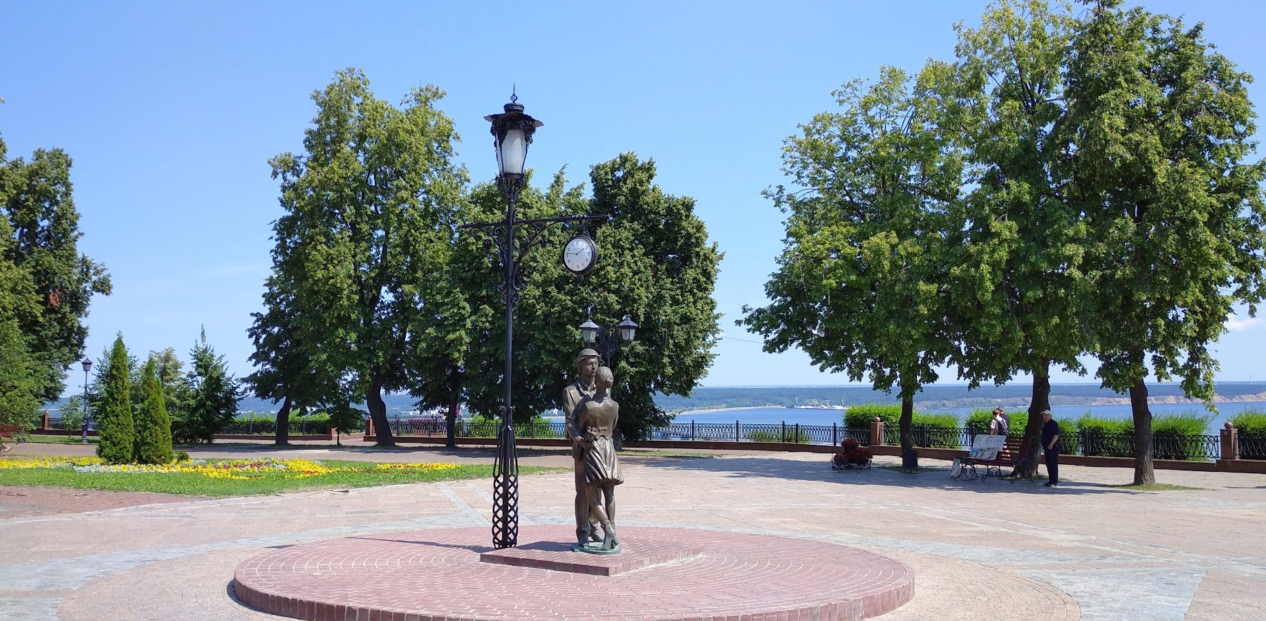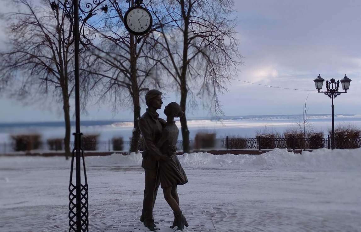 Или мне одной так кажется?! Нет, конечно сегодня зябко, хочется как-то утеплить влюбленных, но летом рядом с ними очень комфортно. Памятник влюблённым установлен в красивейшем месте нашего города, на высоком берегу Волги, редко там бываю, но если уж попадаю туда, то стараюсь обязательно заглянуть в это местечко.