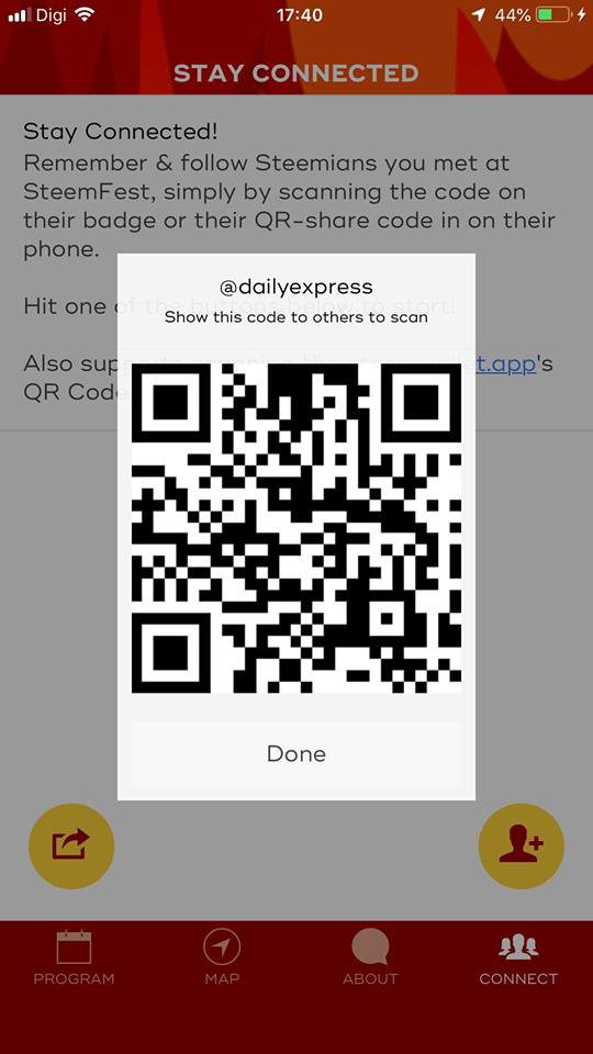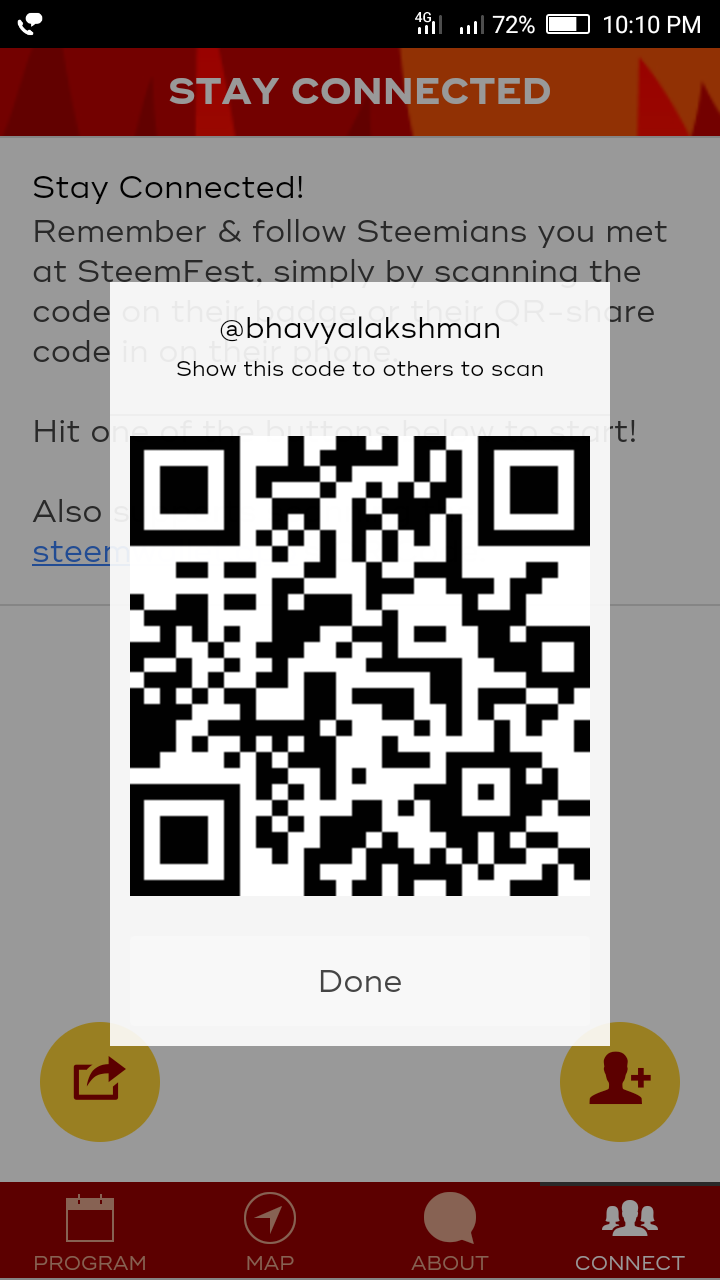 You just scanning theirs(qr on a badge or in app) and they're scanning yours code. You scanning just by tapping this icon above "connect" icon.