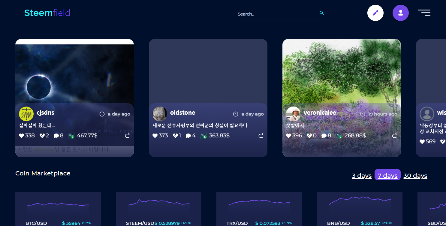 As we work on design, front-end, and back-end tasks, many parts have been updated and modified, and the SteemField Web version is nearing its end.