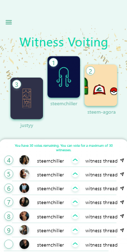 STEEM블록체인에서 중요한 Witnesses 투표 페이지 입니다.