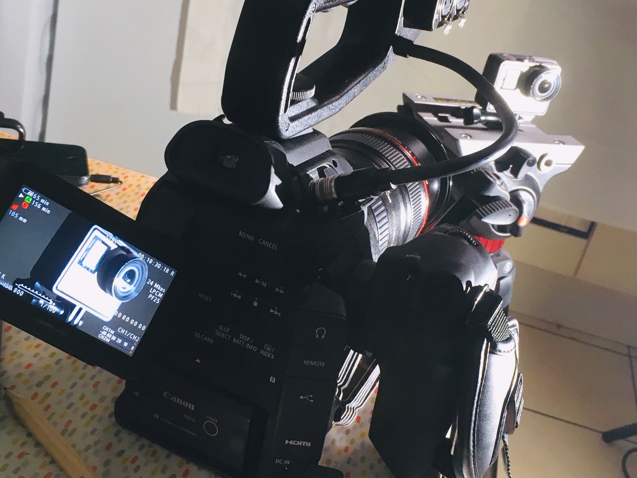 So I got on my thinking cap and eventually rigged up my Canon C100 and a 16-35mm lens with my GoPro, clipped on and stuck dead-centre...