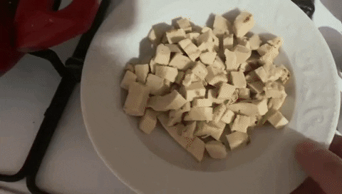 4️⃣ I can say that the reason why this soup is so practical is that the chicken fillet I will use is frozen and we can easily consume it either by heating or without any processing. Since the length of the chicken fillets is large for soup, I cut them into small pieces as below, you can make them smaller, I find it more delicious to have these sizes.