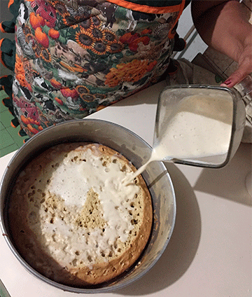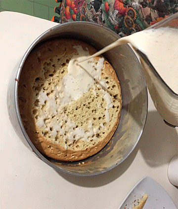 8. Disfruté vaciar el contenido de la licuadora encima del bizcocho, agregaba y esperaba que fuera absorbido para echar más.