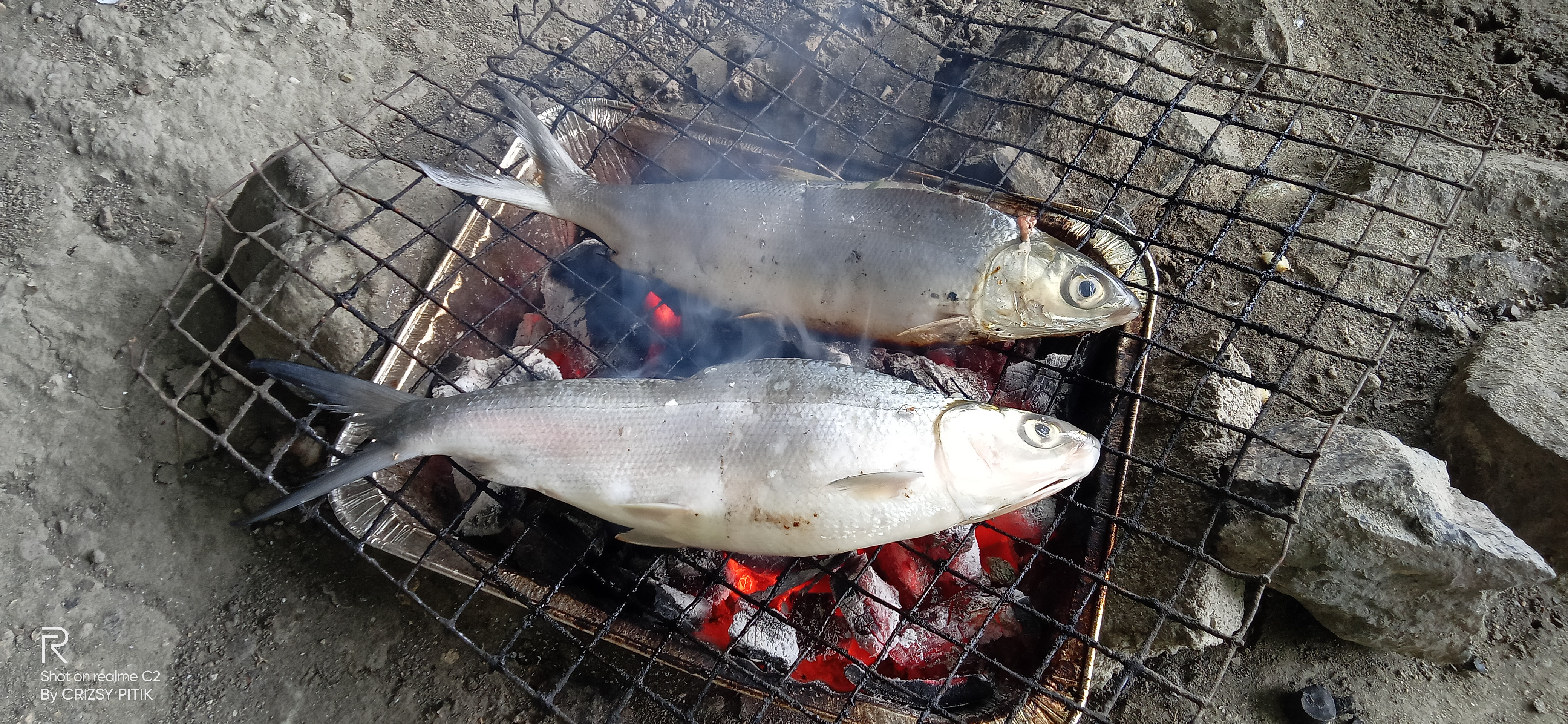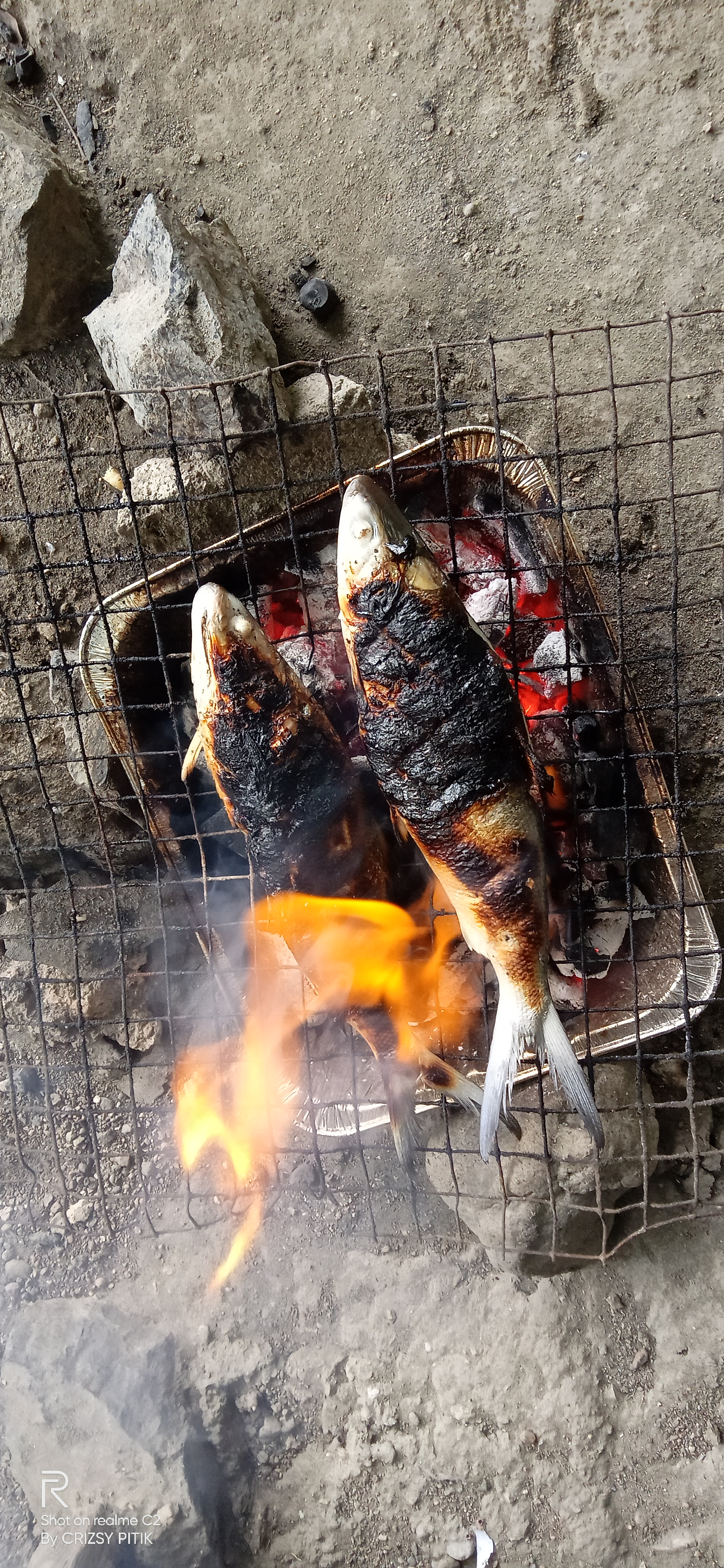 Fifth, once the charcoal is burnt l, we can now place the fish in the grilling pan.